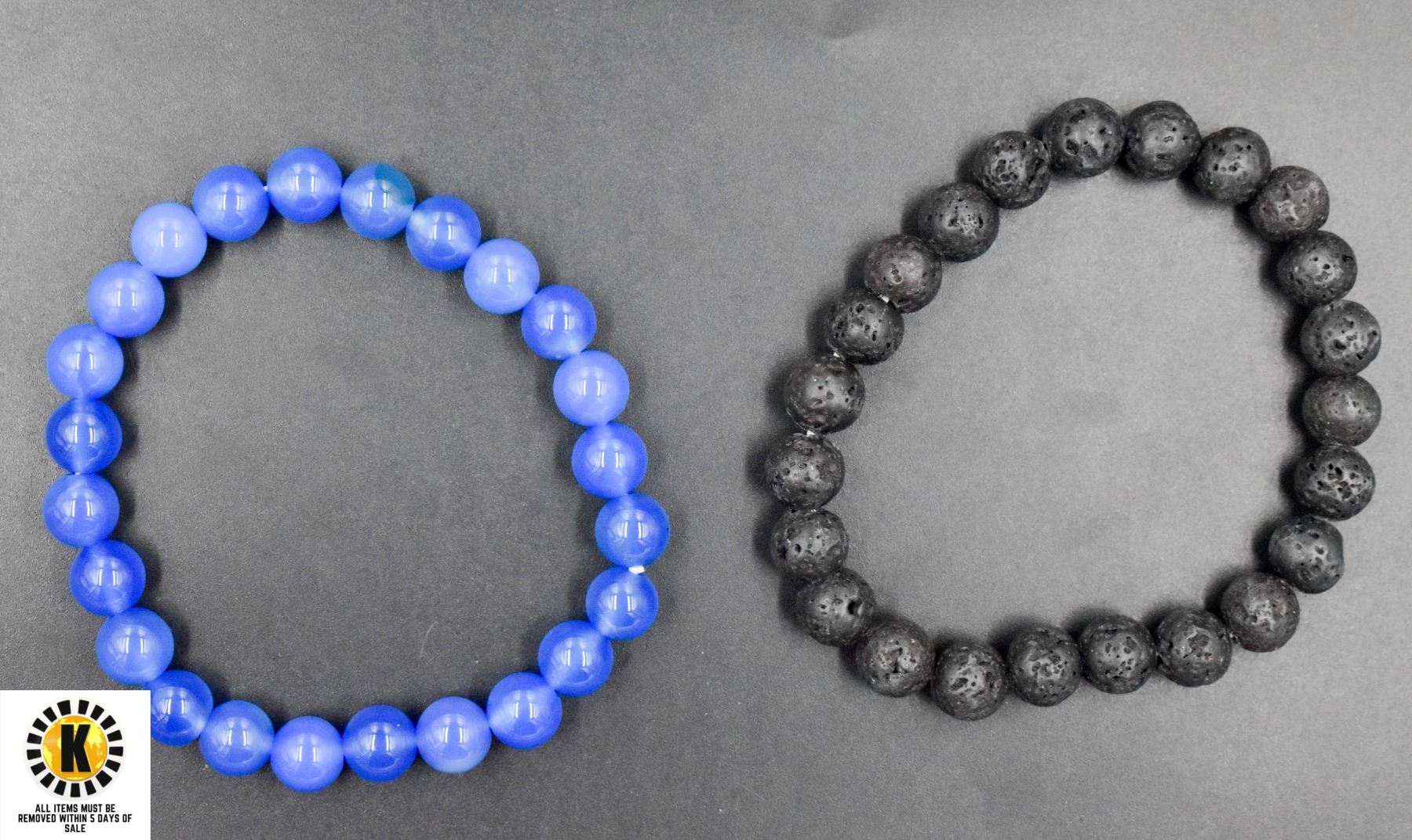 #114-NATURAL BLUE AGATE, LAVA STONE BRACELET