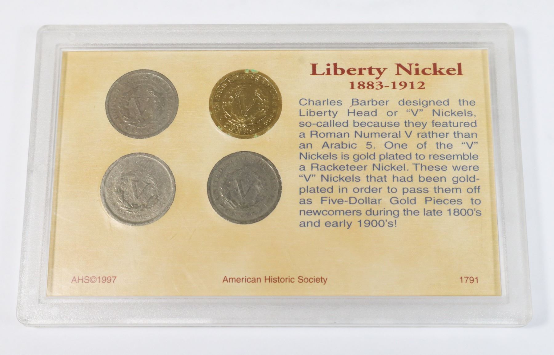 1905 1906 1910 1911 LIBERTY NICKEL LOT OF 4 IN PROTECTIVE CASE BY AMERICAN HISTORIC SOCIETY UNITED STATES OF AMERICA
