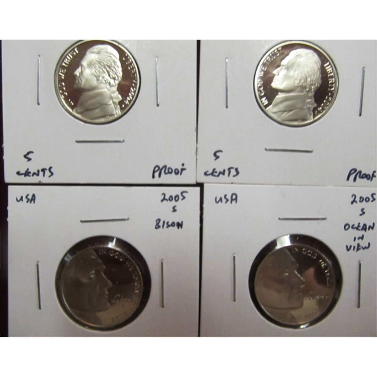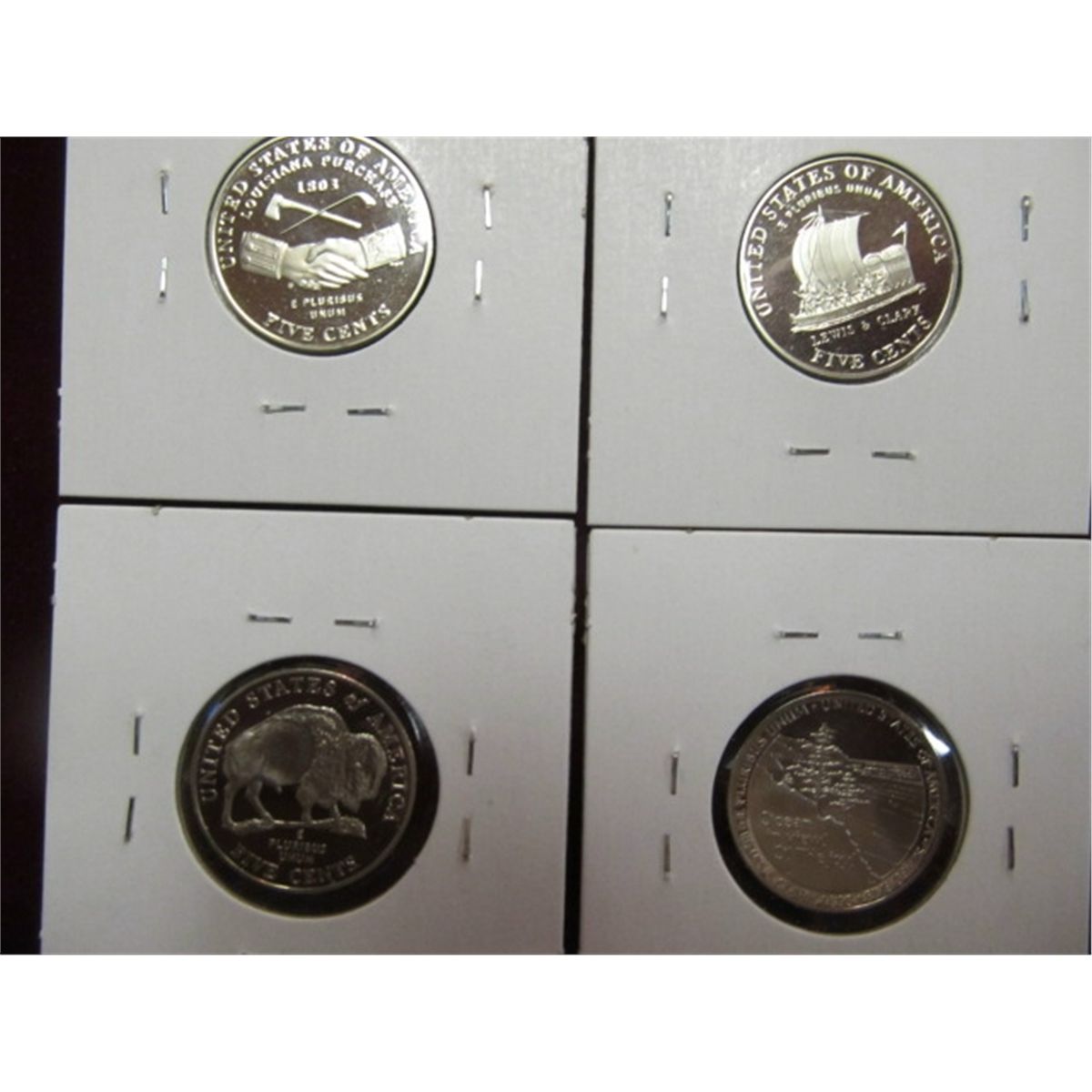 1142. Lewis & Clark Proof Four-Piece Set of Jefferson Nickels. Includes 2004 S Peace & Keel Boat; & 2005 S Bison & Ocean View.