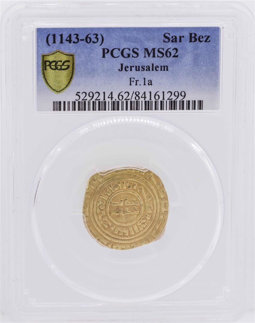 One 1143-63 Islamic Dynasties: Kingdom of Jerusalem Crusaders Gold Coin PCGS MS62. PCGS Graded.