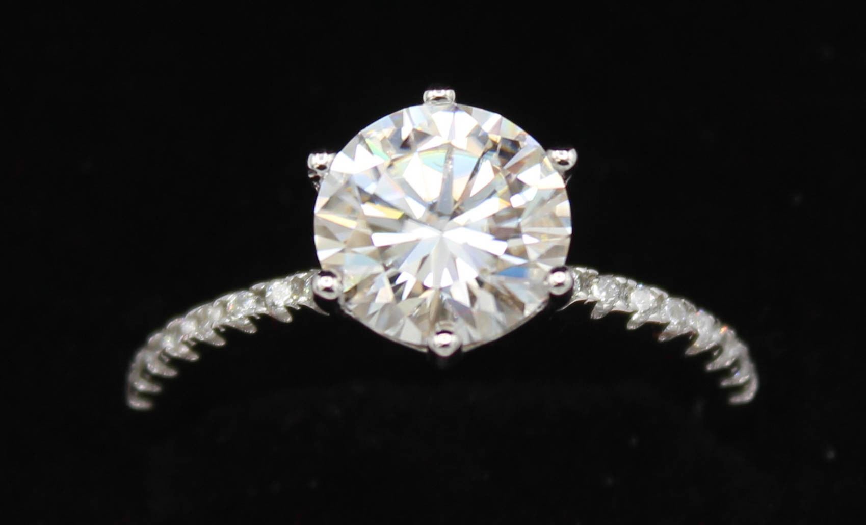 CUT MOISSANITE STONE VVS D COLOR WITH 18 ROUND BRILLIANT CUT CUBIC ZIRCONIA SET IN THE SHANK SET IN 925 SILVER RING SIZE 7 RETAIL VALUE $975.00