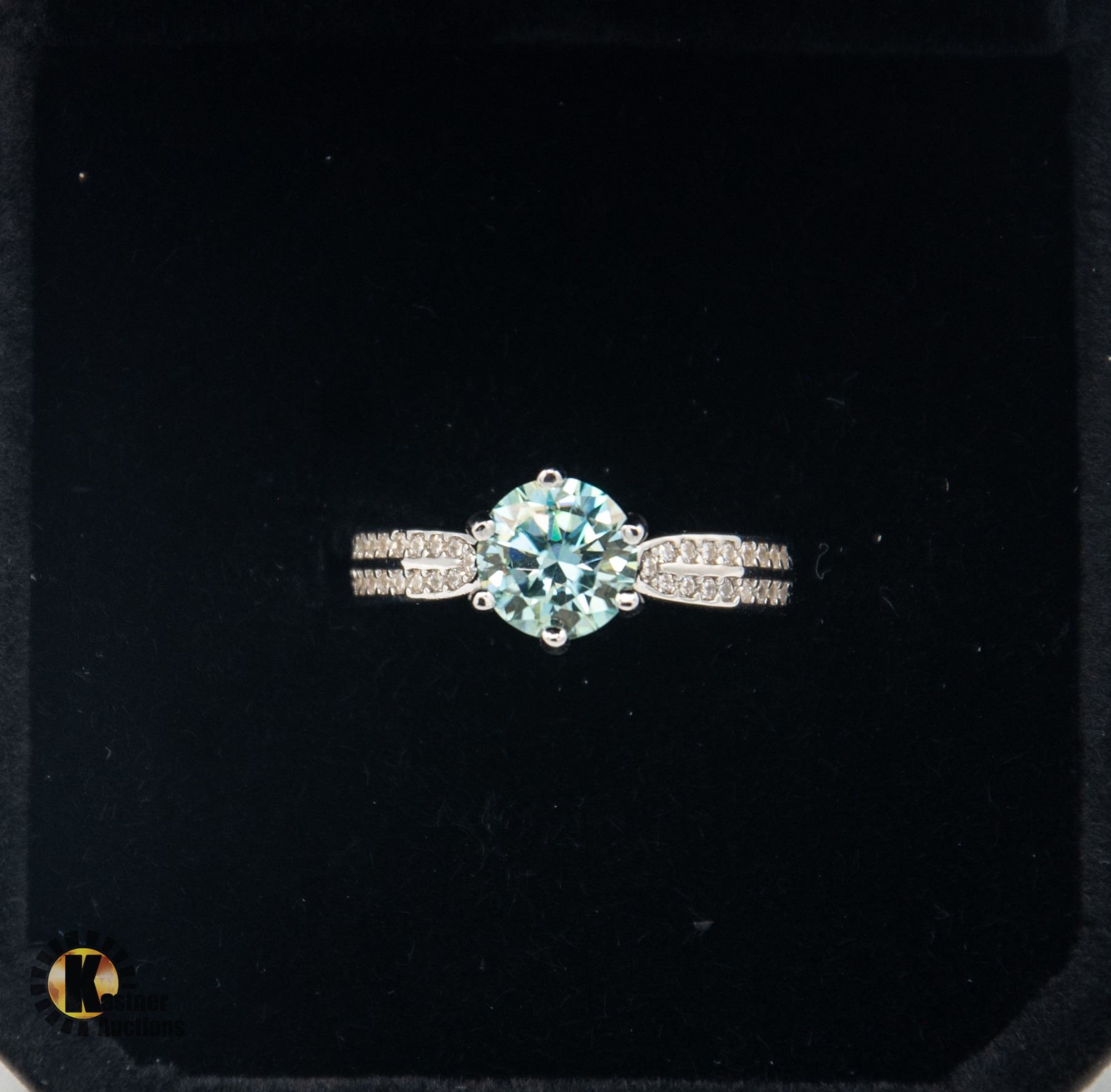 MOISSANITE STONE VVS BLUE COLOR SET IN CENTER WITH 34 ROUND CUT CUBIC ZIRCONIA SET IN SHANKS ON EITHER SIDE SET IN 925 SILVER RING SIZE 5 RETAIL VALUE $725.00 **ALL ITEMS MUST BE REMOVED BY 5PM SATURDAY, DECEMBER 14th 2024. ALL REMAINING ITEMS WILL BE SUBJECT TO A $6.00 PER DAY STORAGE CHARGE. ANY ITEMS REMAINING AFTER MONDAY, DECEMBER 30TH 2024 WILL BE CONSIDERED FORFEITED. NO REFUNDS WILL BE ISSUED FOR FORFEITED ITEMS. TO SCHEDULE A PICK UP APPOINTMENT CLICK HERE