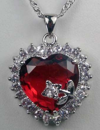 11475 - WHITE GOLD PLATED RUBY TOPAZ PENDENT W/ CHAIN