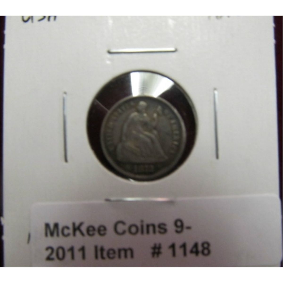 1148. 1872 P U.S. Seated Liberty Half Dime. EF Slight bend.