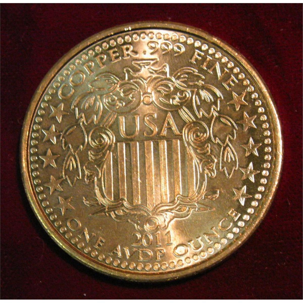 1148. 2011 Copper .999 Fine One AVDP. Ounce, Morgan Dollar Design Medallion.