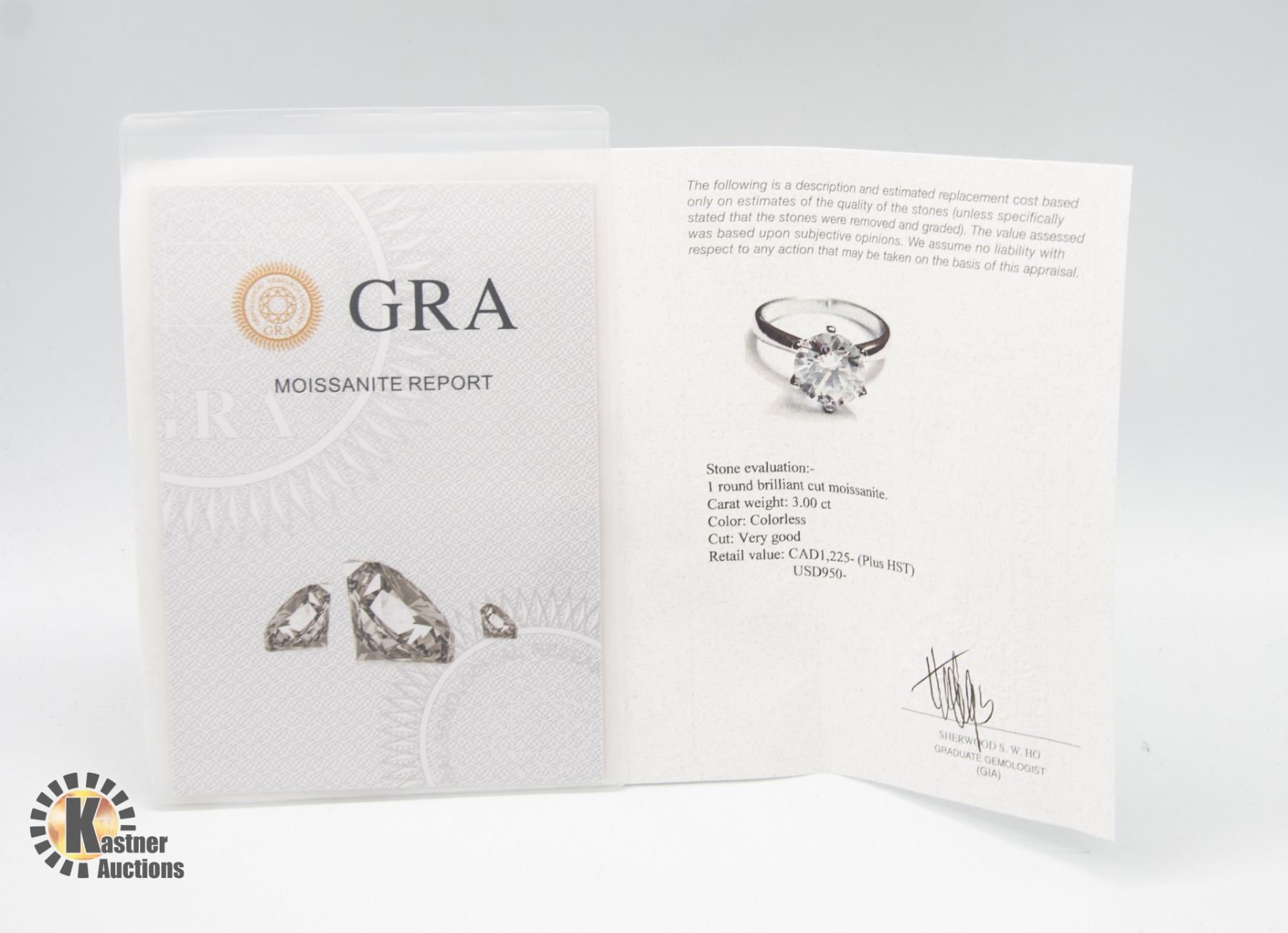 MOISSANITE STONE VVS D COLOR SET IN 6 CLAW HEAD SET IN 925 SILVER RING SIZE 8 RETAIL VALUE $1,225.00 **ALL ITEMS MUST BE REMOVED BY 5PM SATURDAY, DECEMBER 14th 2024. ALL REMAINING ITEMS WILL BE SUBJECT TO A $6.00 PER DAY STORAGE CHARGE. ANY ITEMS REMAINING AFTER MONDAY, DECEMBER 30TH 2024 WILL BE CONSIDERED FORFEITED. NO REFUNDS WILL BE ISSUED FOR FORFEITED ITEMS. TO SCHEDULE A PICK UP APPOINTMENT CLICK HERE