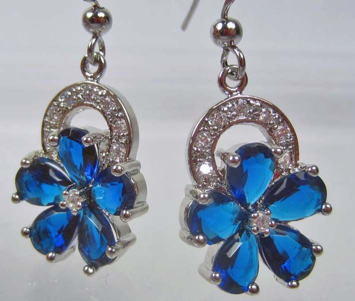 11487 - PAIR OF  WHITE GOLD PLATED SAPPHIRE & TOPAZ  EARRINGS