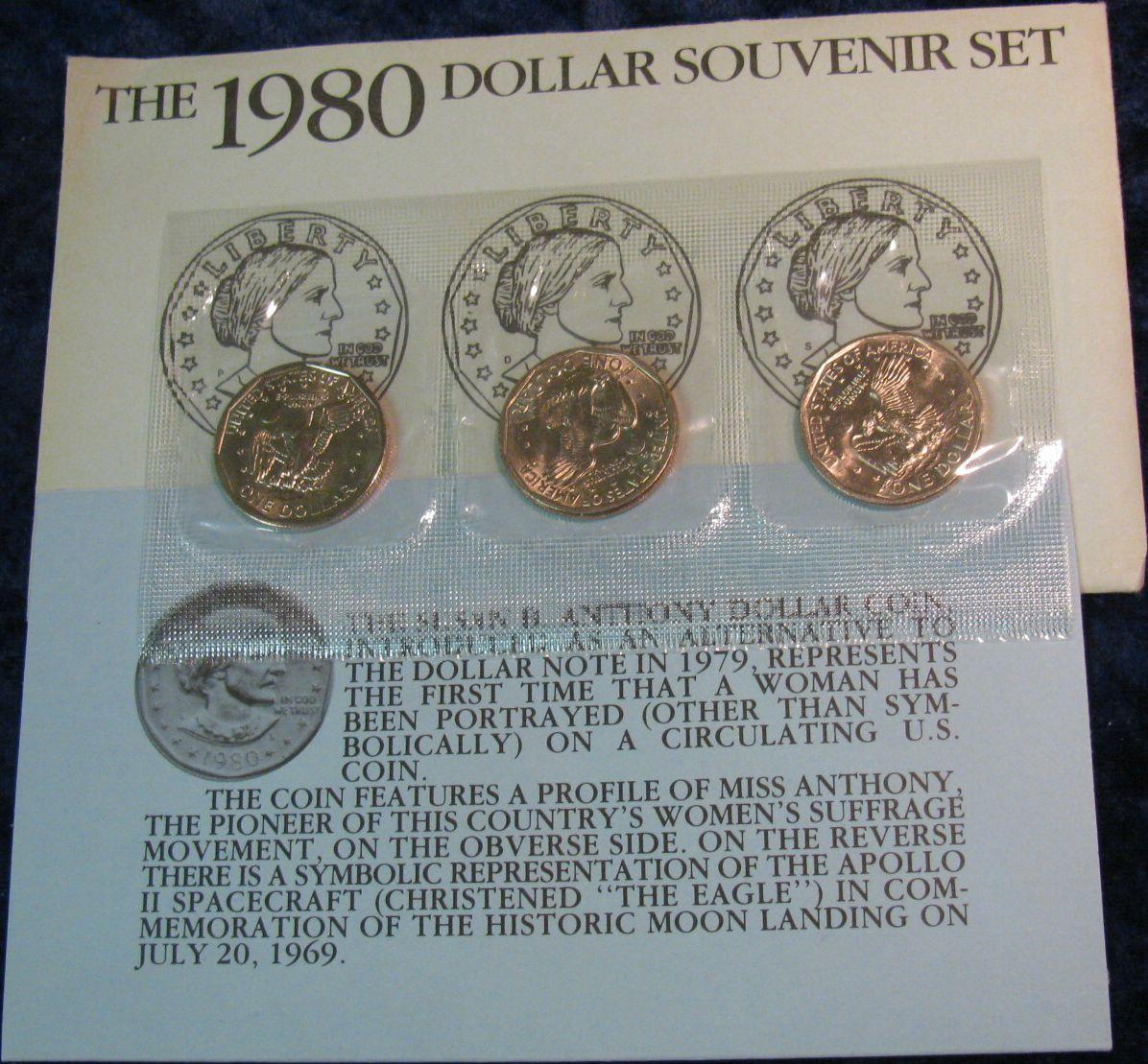 1149. 1980P,D,& S Susan B. Anthony Dollar Set. Mint Issued