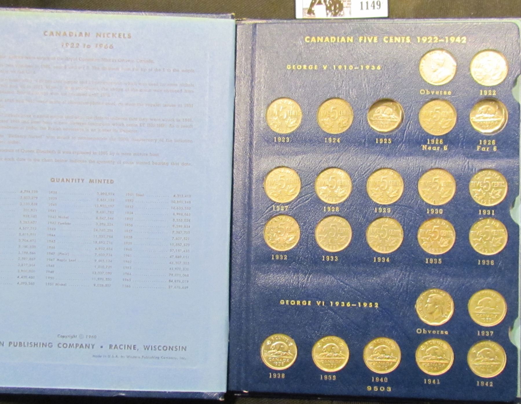 1149 . Canadian nickel set starting with 1922. It is missing the 1925 and 1926 far 6