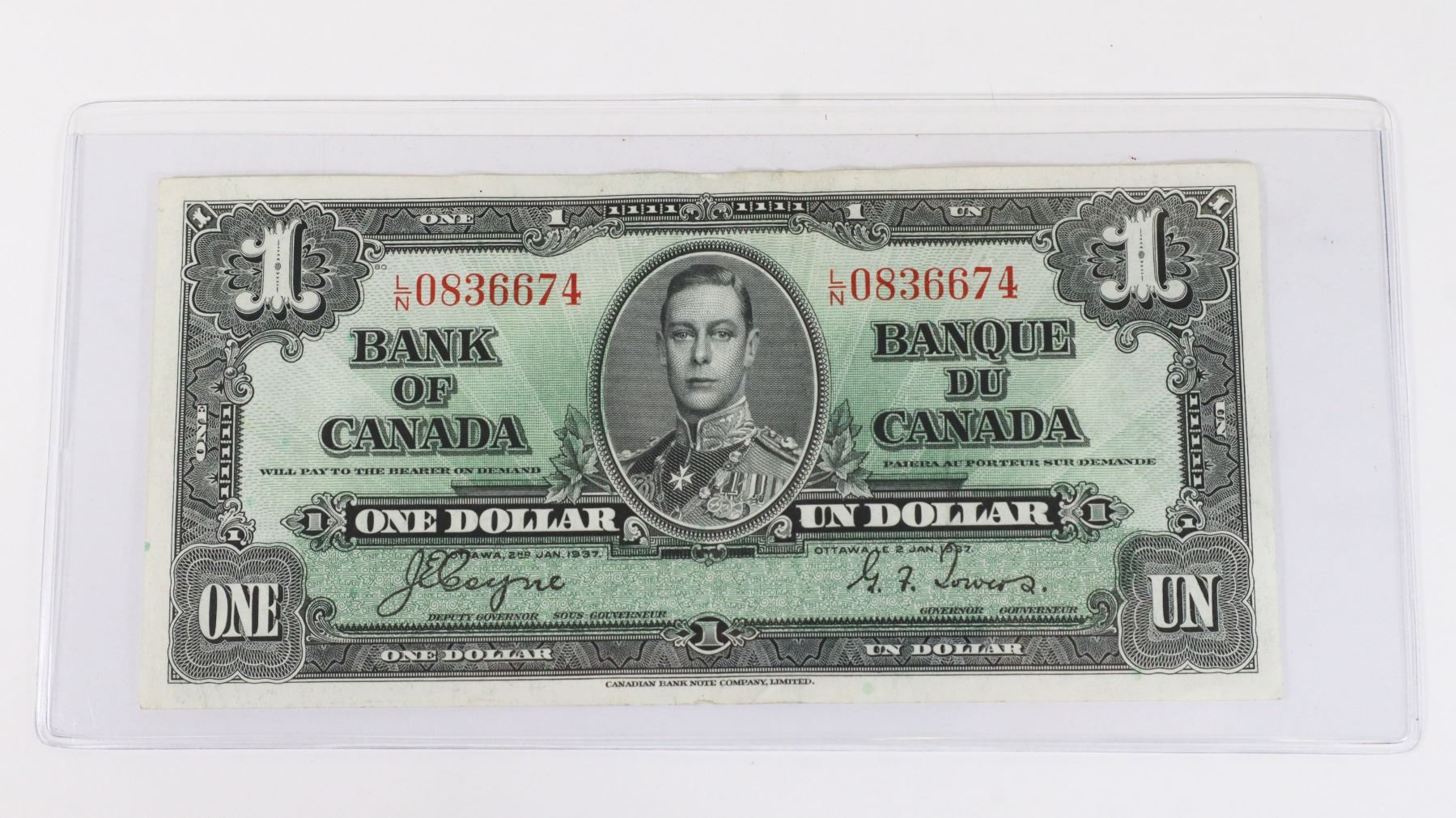 KING GEORGE V CANADIAN CANADA PAPER MONEY NOTE CURRENCY IN PROTECTIVE SLEEVE