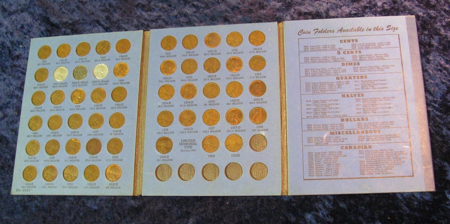 115. 1941-59 Partial Lincoln Cent Set in a Whitman folder. (53 coins)