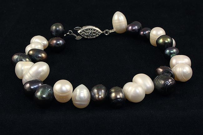 7 INCHES LONG BRACELET BLACK AND WHITE FRESHWATER PEARL WITH METAL LOCK (7-8MM)