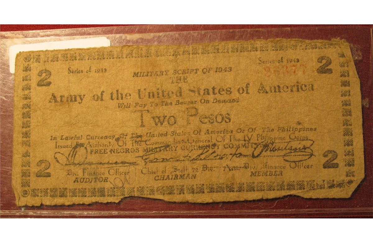 115. Army of the United States of America Two Peso Military Script of 1943 used in the Philippines Islands.