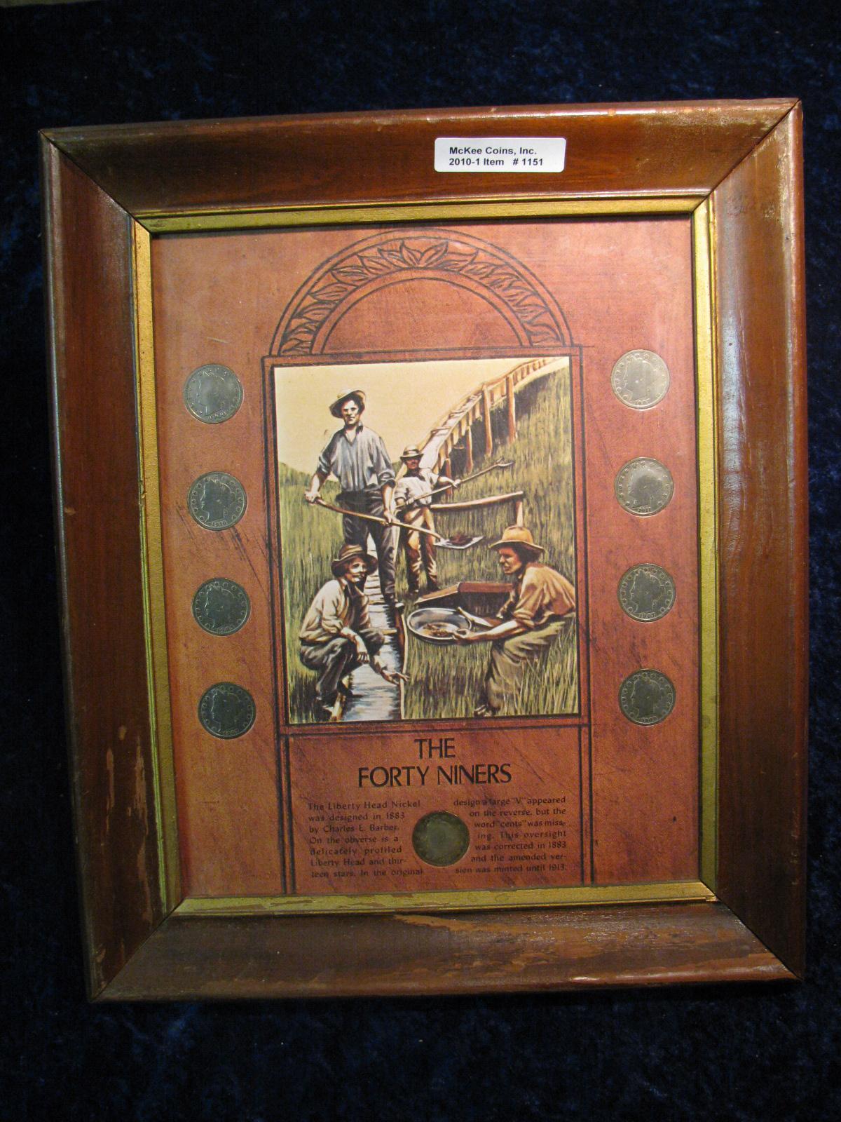 1151. The Forty Niners Frame with 9-Liberty Head Nickels.
