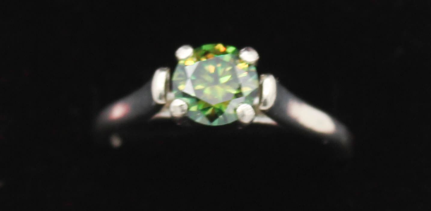 CUT MOISSANITE STONE VVS VIBRANT BLUE-GREEN SET IN 925 SILVER RING SIZE 8