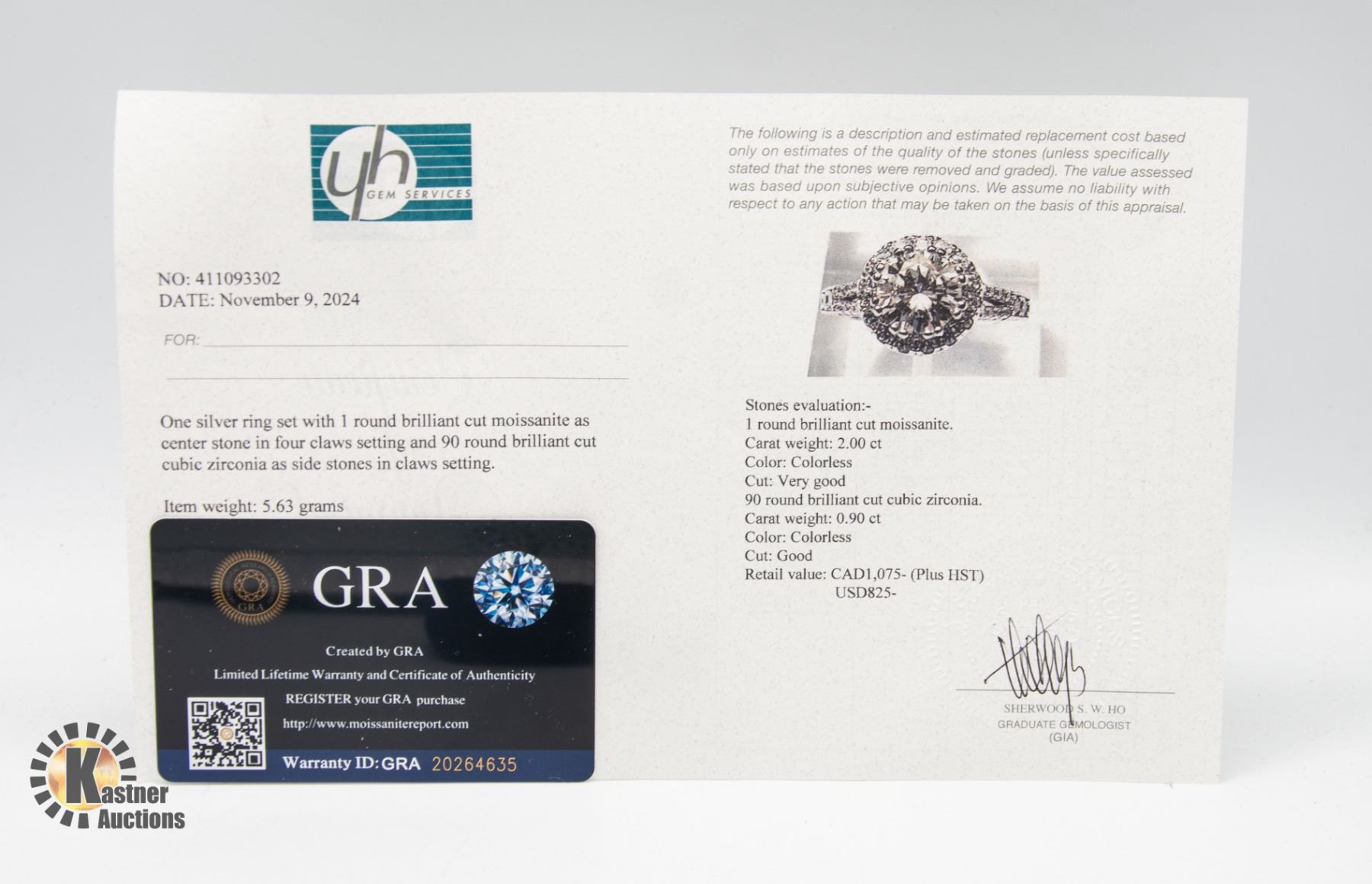MOISSANITE STONE VVS D COLOR WITH 90 ROUND CUT CUBIC ZIRCONIA SET IN 925 SILVER RING SIZE 7 RETAIL VALUE $1,075.00 **ALL ITEMS MUST BE REMOVED BY 5PM SATURDAY, DECEMBER 14th 2024. ALL REMAINING ITEMS WILL BE SUBJECT TO A $6.00 PER DAY STORAGE CHARGE. ANY ITEMS REMAINING AFTER MONDAY, DECEMBER 30TH 2024 WILL BE CONSIDERED FORFEITED. NO REFUNDS WILL BE ISSUED FOR FORFEITED ITEMS. TO SCHEDULE A PICK UP APPOINTMENT CLICK HERE