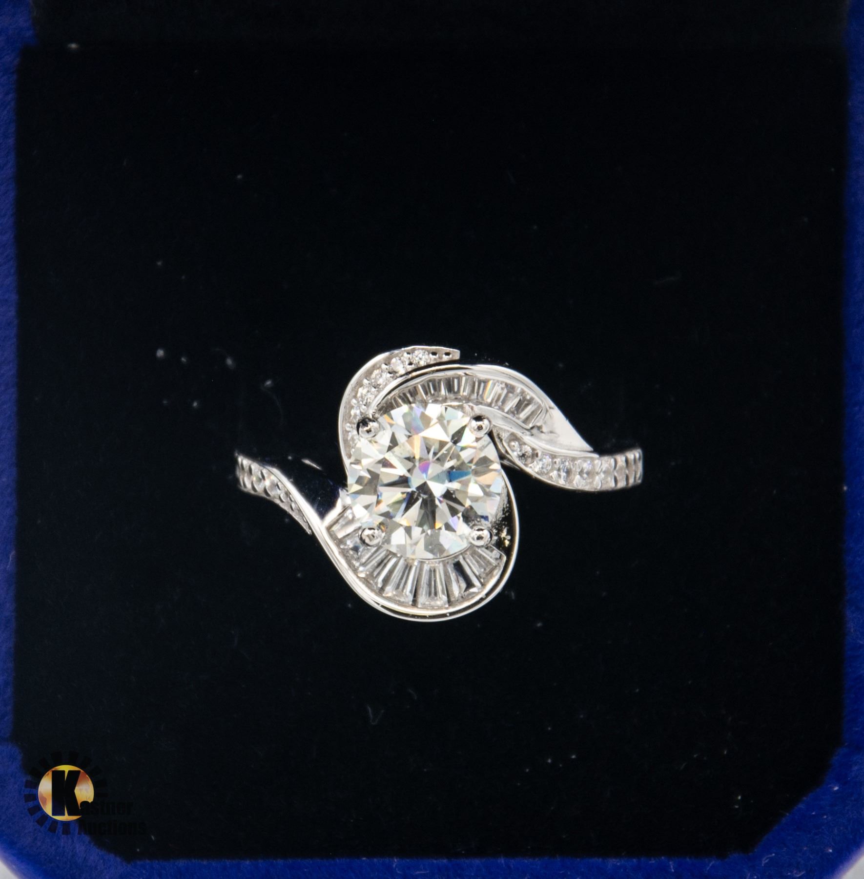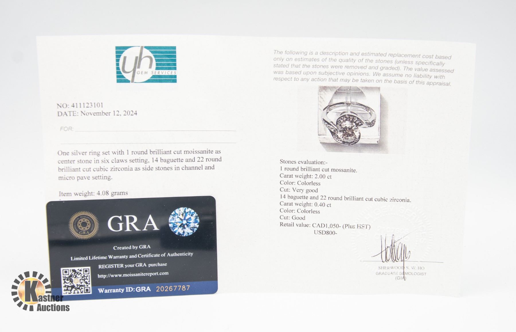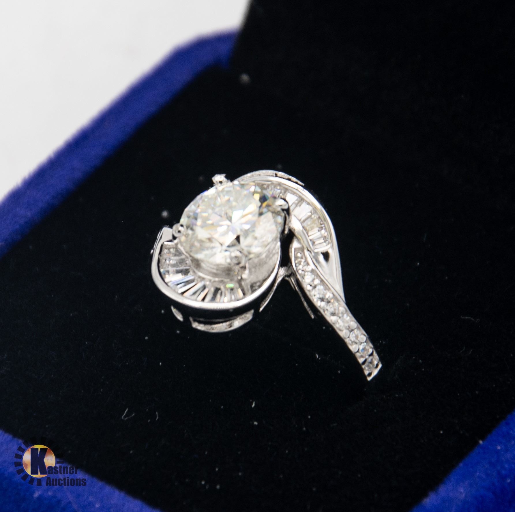 MOISSANITE STONE VVS D COLOR WITH 14 BAGUETTE AND 22 ROUND CUT CUBIC ZIRCONIA 90 ROUND CUT CUBIC ZIRCONIA SET IN 925 SILVER RING SIZE 7 RETAIL VALUE $1,050.00 **ALL ITEMS MUST BE REMOVED BY 5PM SATURDAY, DECEMBER 14th 2024. ALL REMAINING ITEMS WILL BE SUBJECT TO A $6.00 PER DAY STORAGE CHARGE. ANY ITEMS REMAINING AFTER MONDAY, DECEMBER 30TH 2024 WILL BE CONSIDERED FORFEITED. NO REFUNDS WILL BE ISSUED FOR FORFEITED ITEMS. TO SCHEDULE A PICK UP APPOINTMENT CLICK HERE