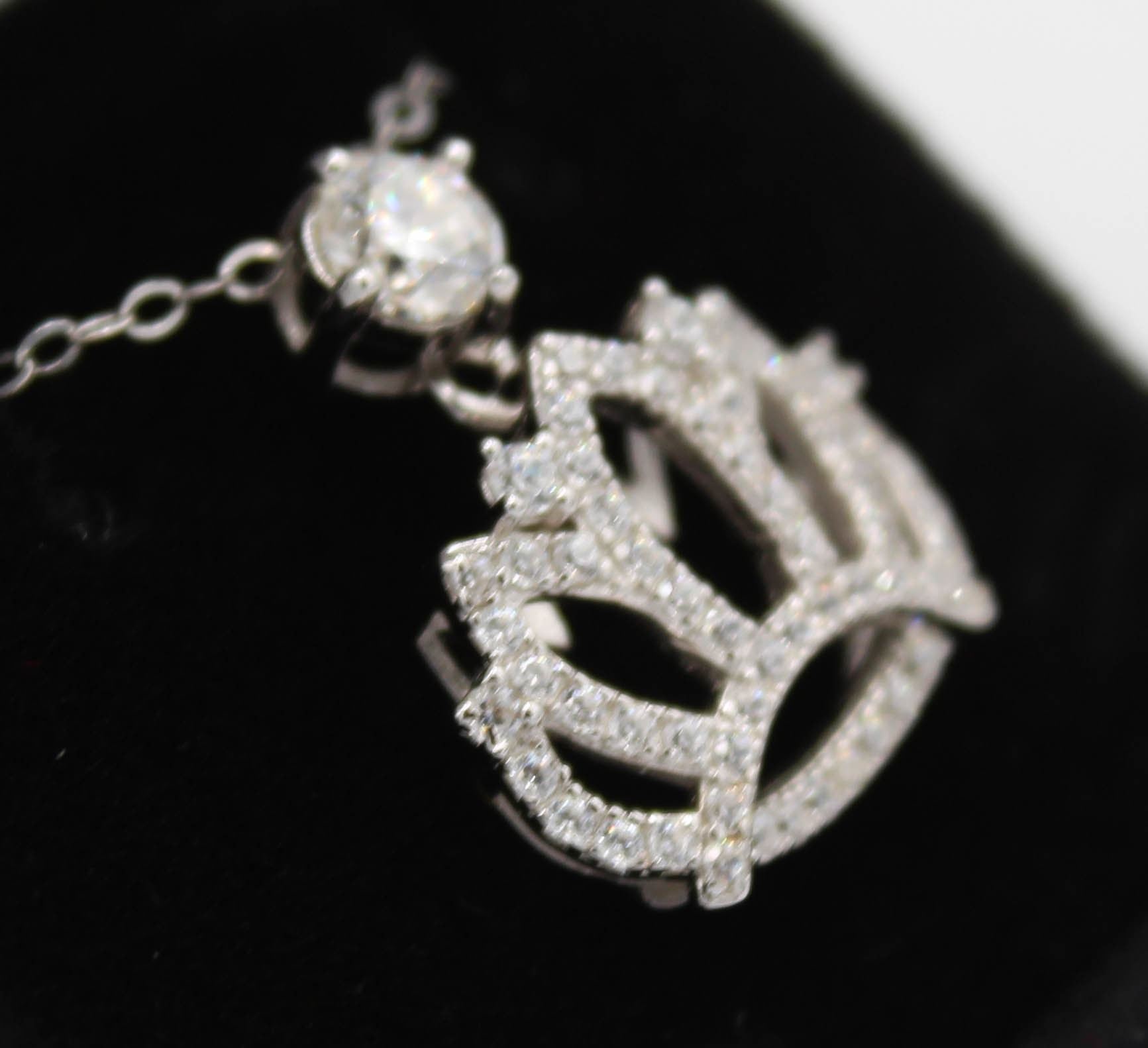 VVS D COLOR SET ON TOP OF CROWN WITH MULTIPLE ROUND BRILLIANT CUT CUBIC ZIRCONIA SET IN 925 SILVER PENDANT