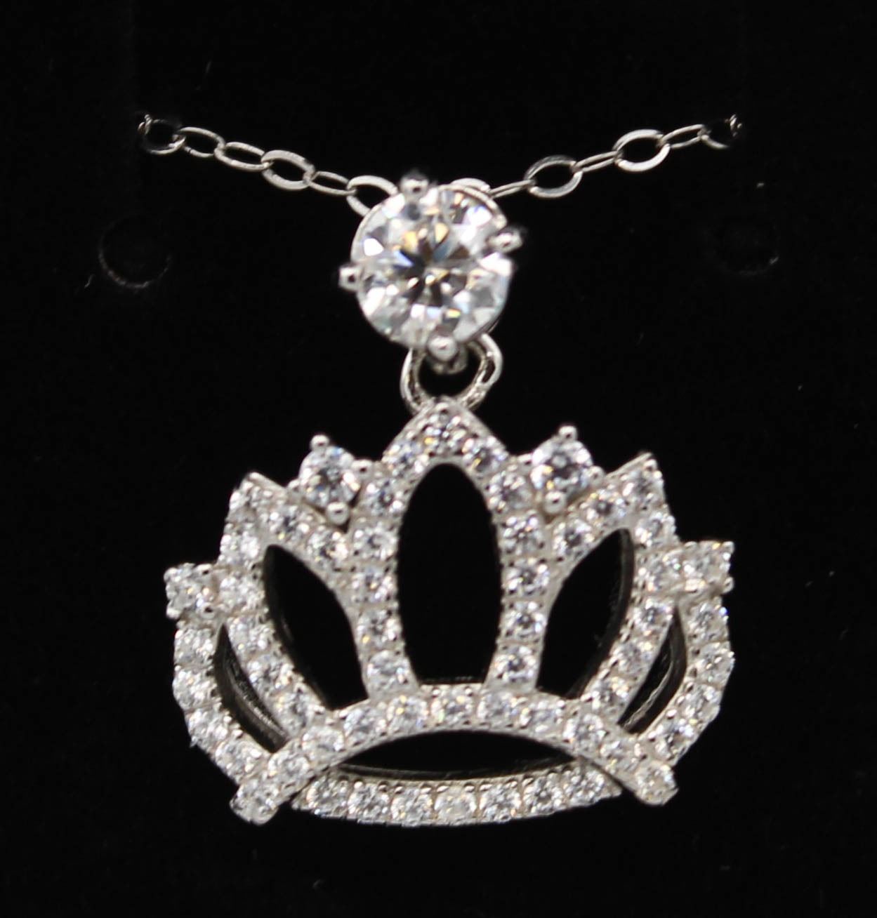 VVS D COLOR SET ON TOP OF CROWN WITH MULTIPLE ROUND BRILLIANT CUT CUBIC ZIRCONIA SET IN 925 SILVER PENDANT