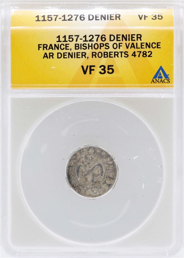 One 1157-1276 France Denier Bishops of Valence Coin ANACS VF35. ANACS Appraised.