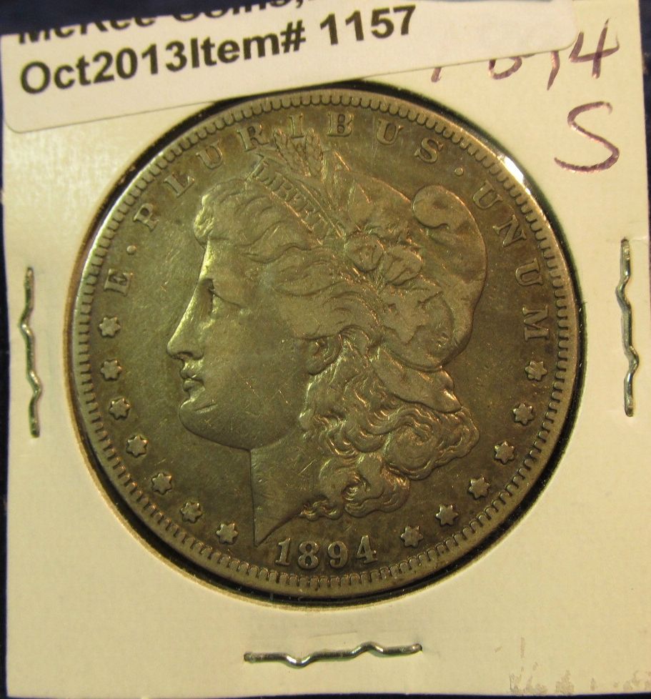 1157. 1894 S Morgan Silver Dollar. VF 20. Red book value $95.00.