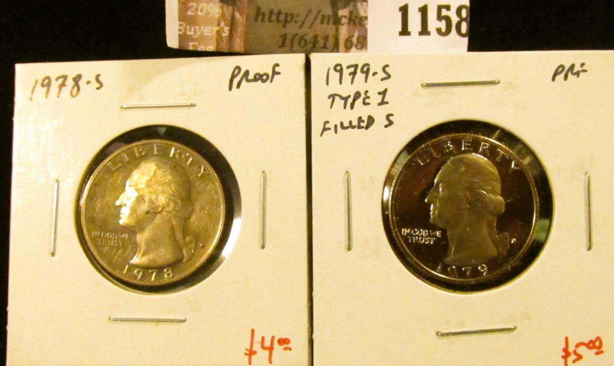 1158 . (2) Proof Washington Quarters, 1978-S & 1979-S type 1, value