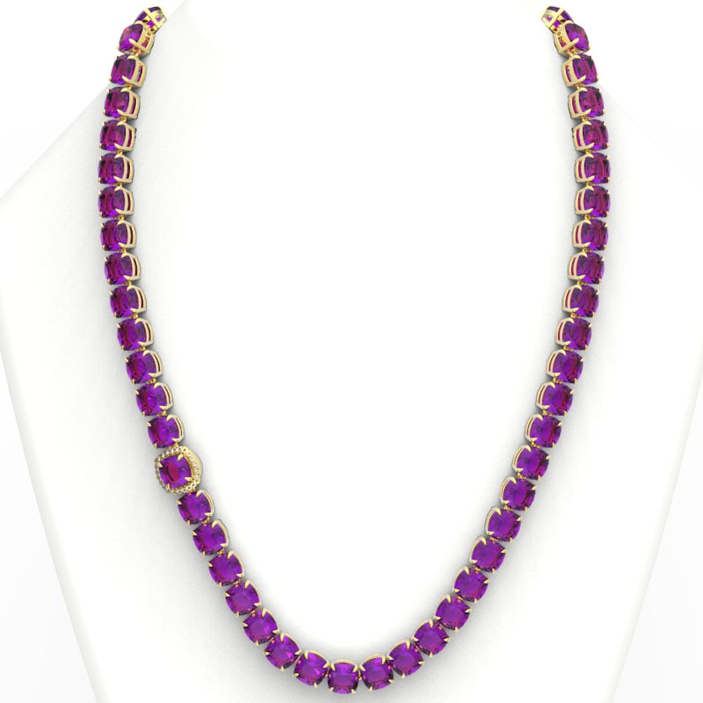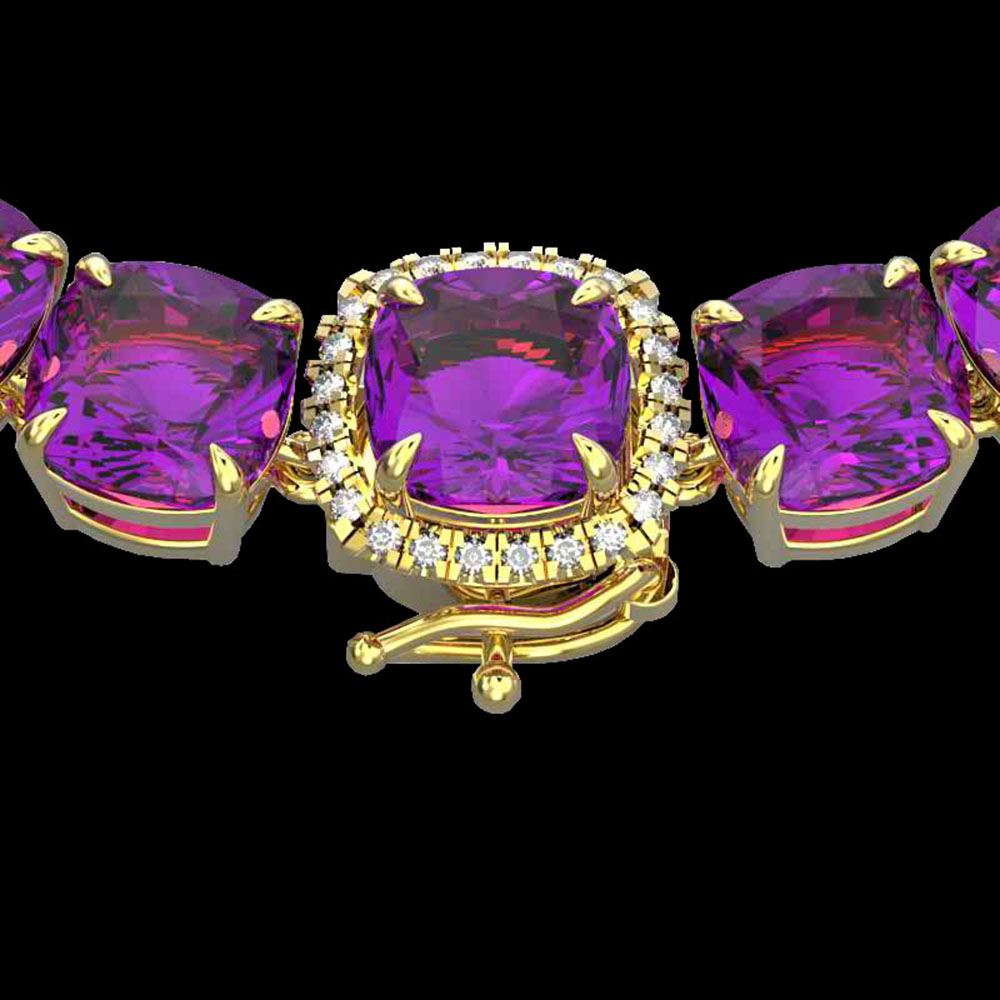 REF-350M2G - SKU: 23335 ---- 116 ctw Amethyst & VS/SI Diamond Halo Micro Necklace 14k Yellow Gold