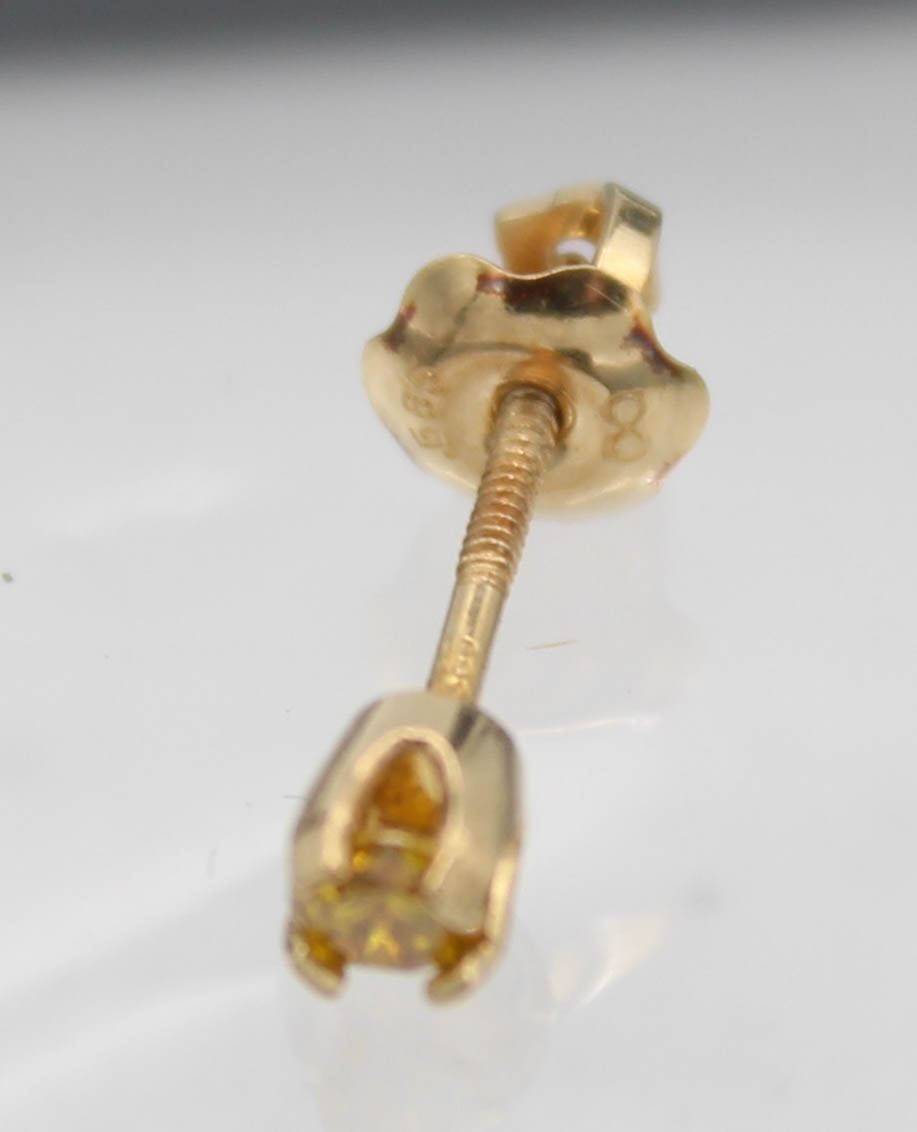 ROUND BRILLIANT CUT MOISSANITE VVS CHAMPAGNE COLOR SET IN 14 KT YELLOW GOLD EARRING WITH SCREW BACK
