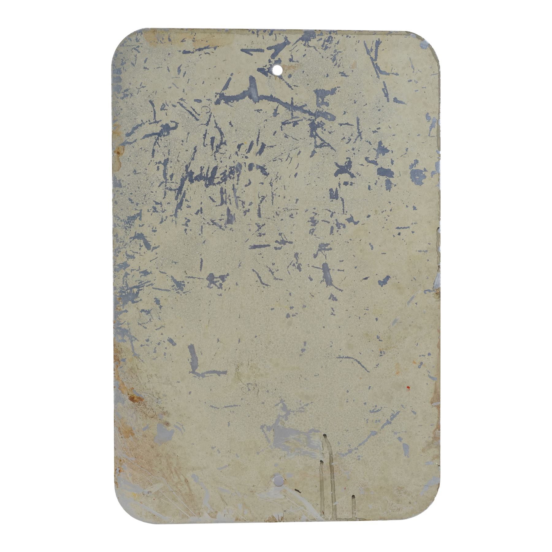 This lot consists of one metal sign with a red circle "backslash" symbol over two fighting figures with "NO BRAWLING" in black text below it. The sign has a hand-painted stylized graffiti tag for "T4V[sic]." Production intentionally distressed this sign to appear aged and rusted. This lot exhibits chipped paint and scratched metal on the back. Dimensions: 12" x 18" (30.5 cm x 45.75 cm)