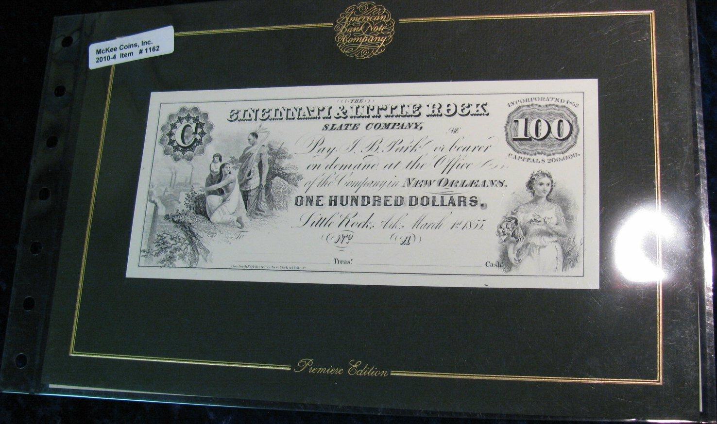 1162. 1855 Cincinnati & Little Rock, Broken Bank Note, Re-Printed fron the Original Plated.