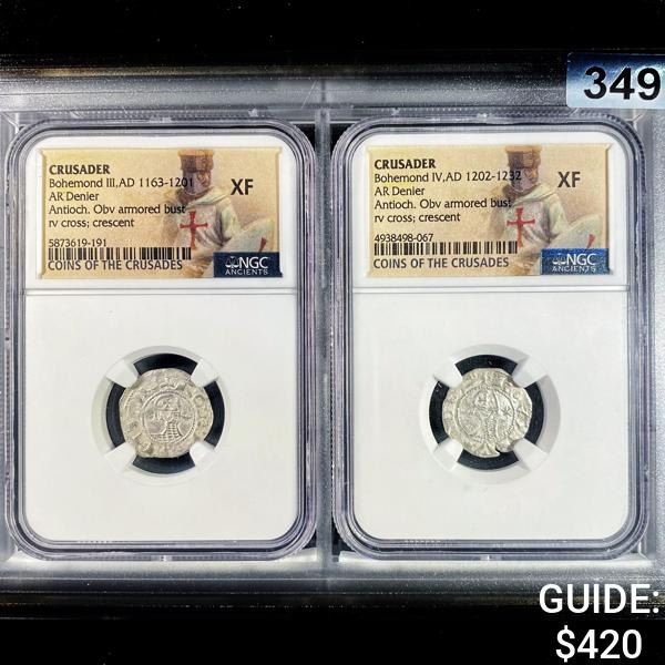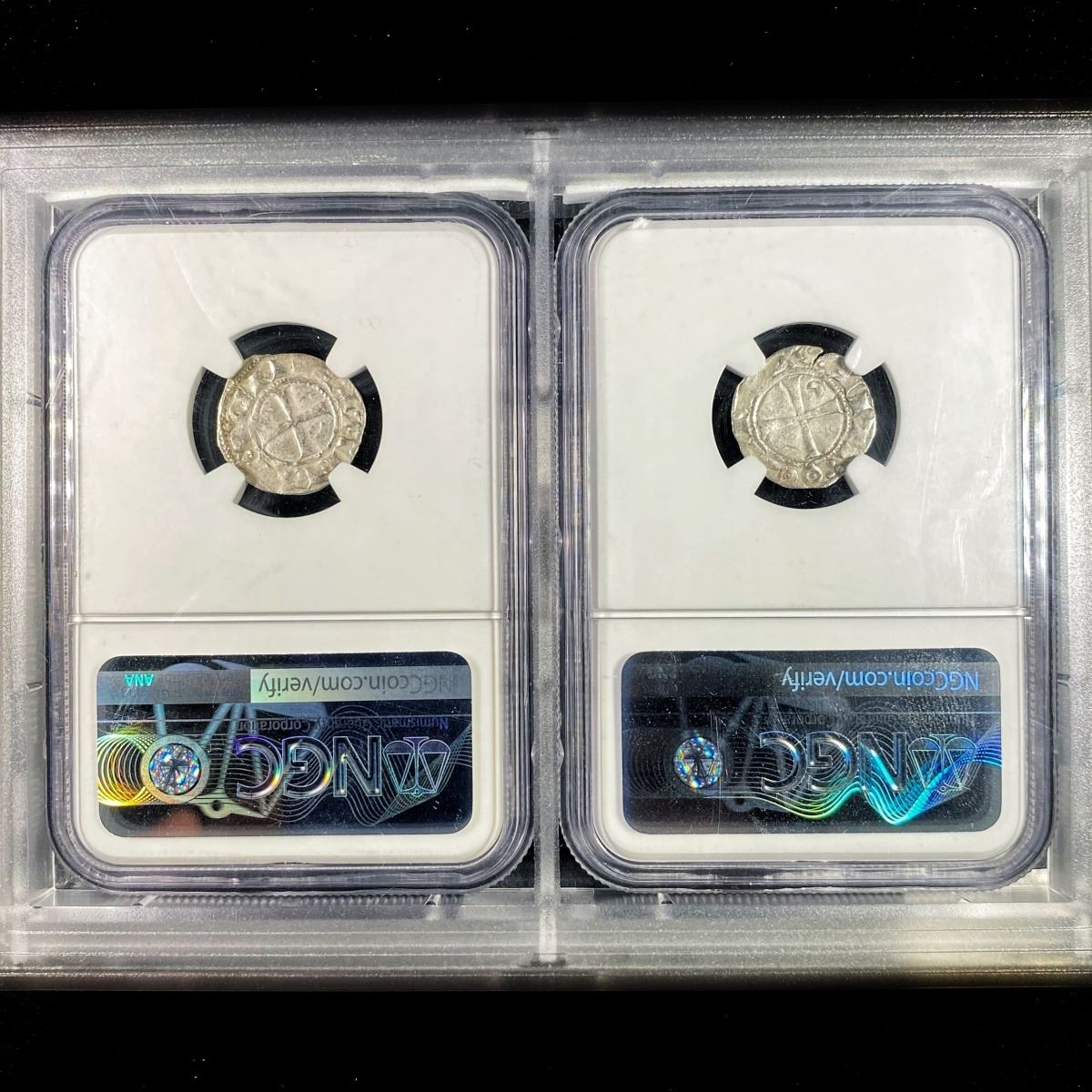 1163-1201 & 1202-1232 AD AR Denier x2 NGC - XF