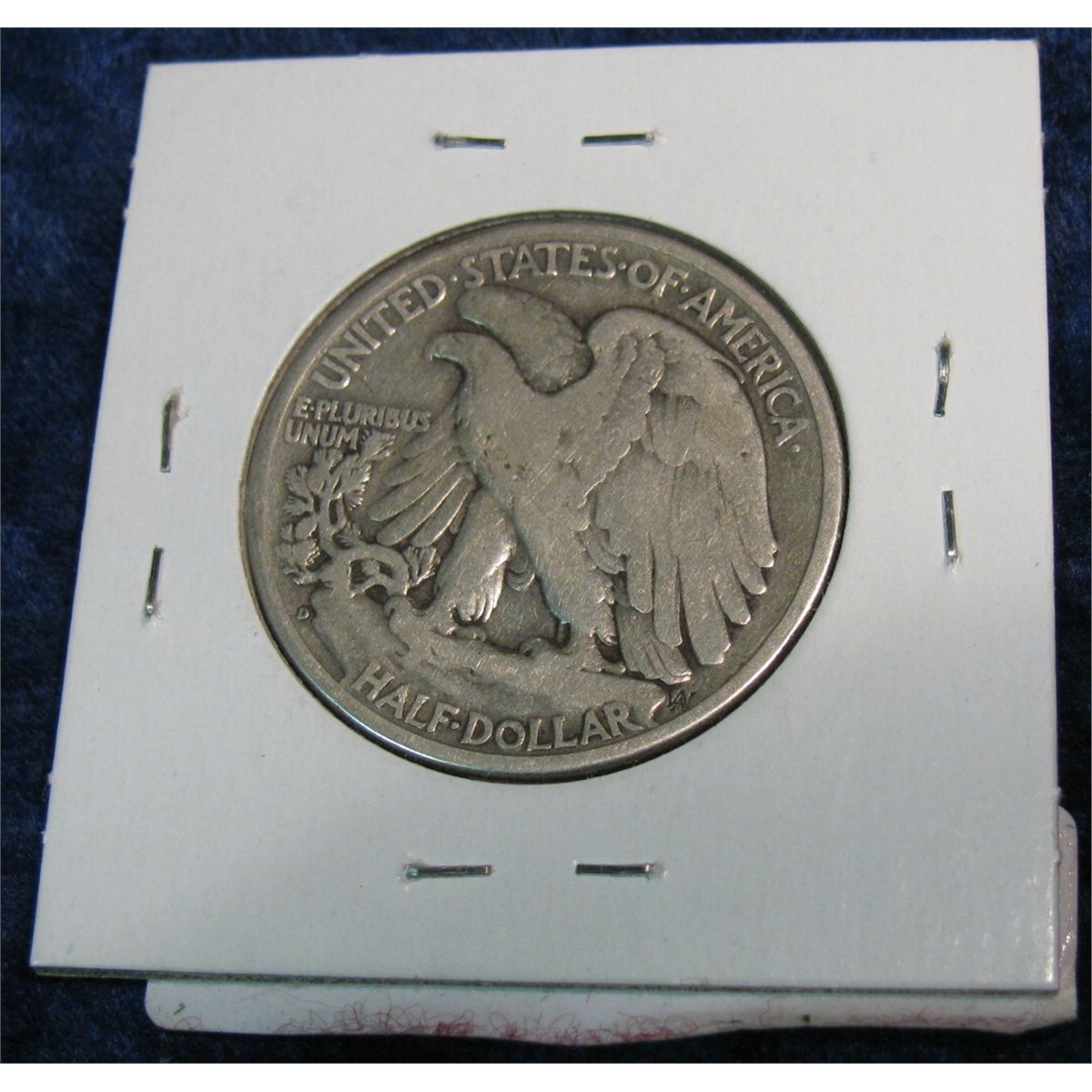 1164. 1938 D Walking Liberty Half Dollar. VG, cleaned, Net G-4.