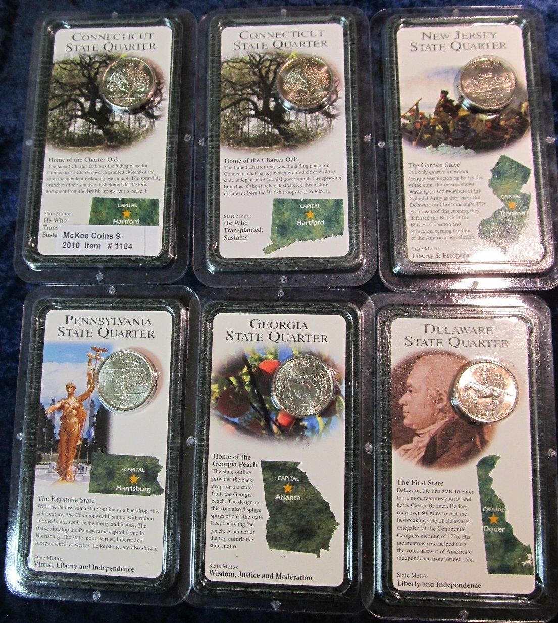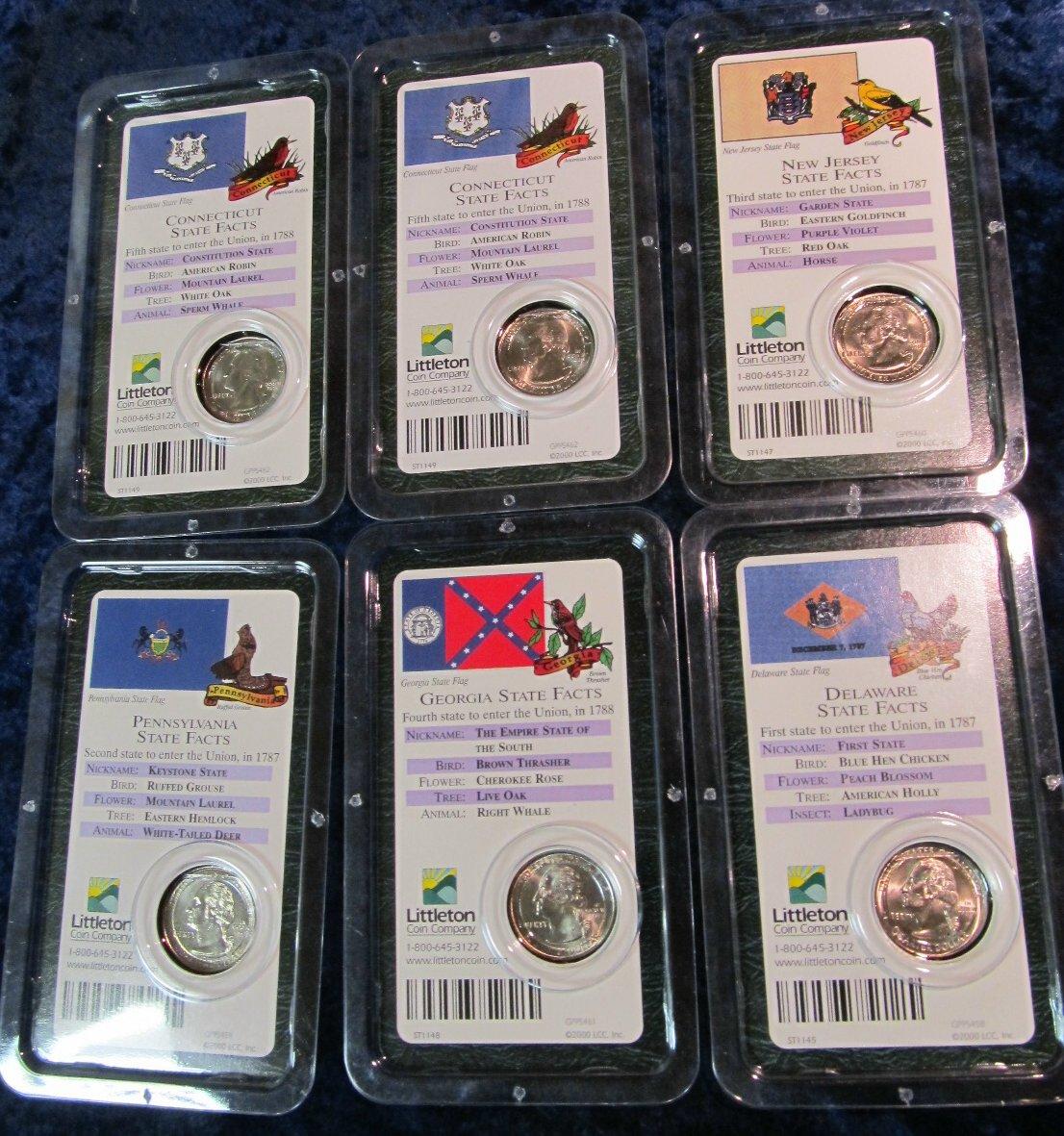 1164. (6) 1999 Statehood Quarters In Littleton Bubble Packs. BU.