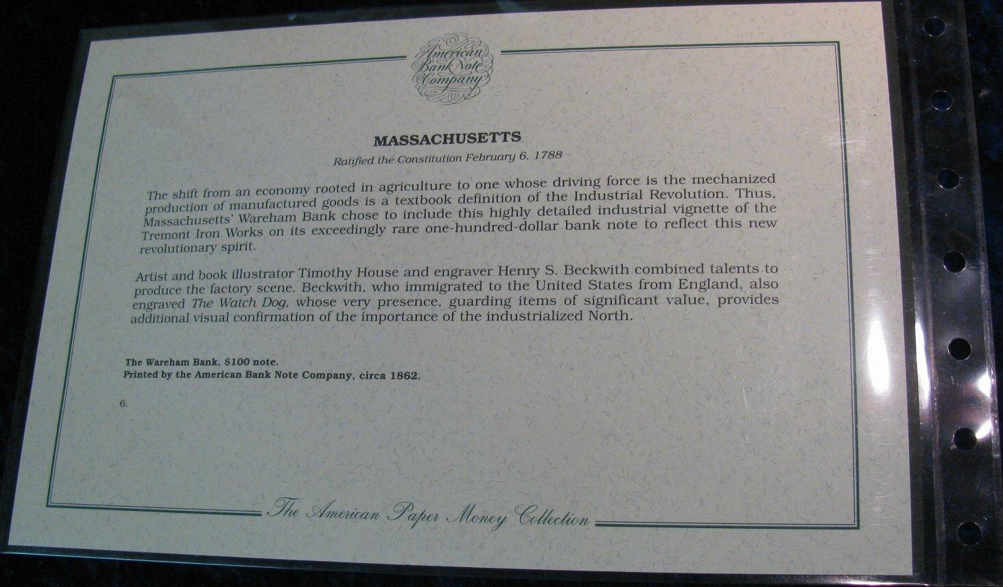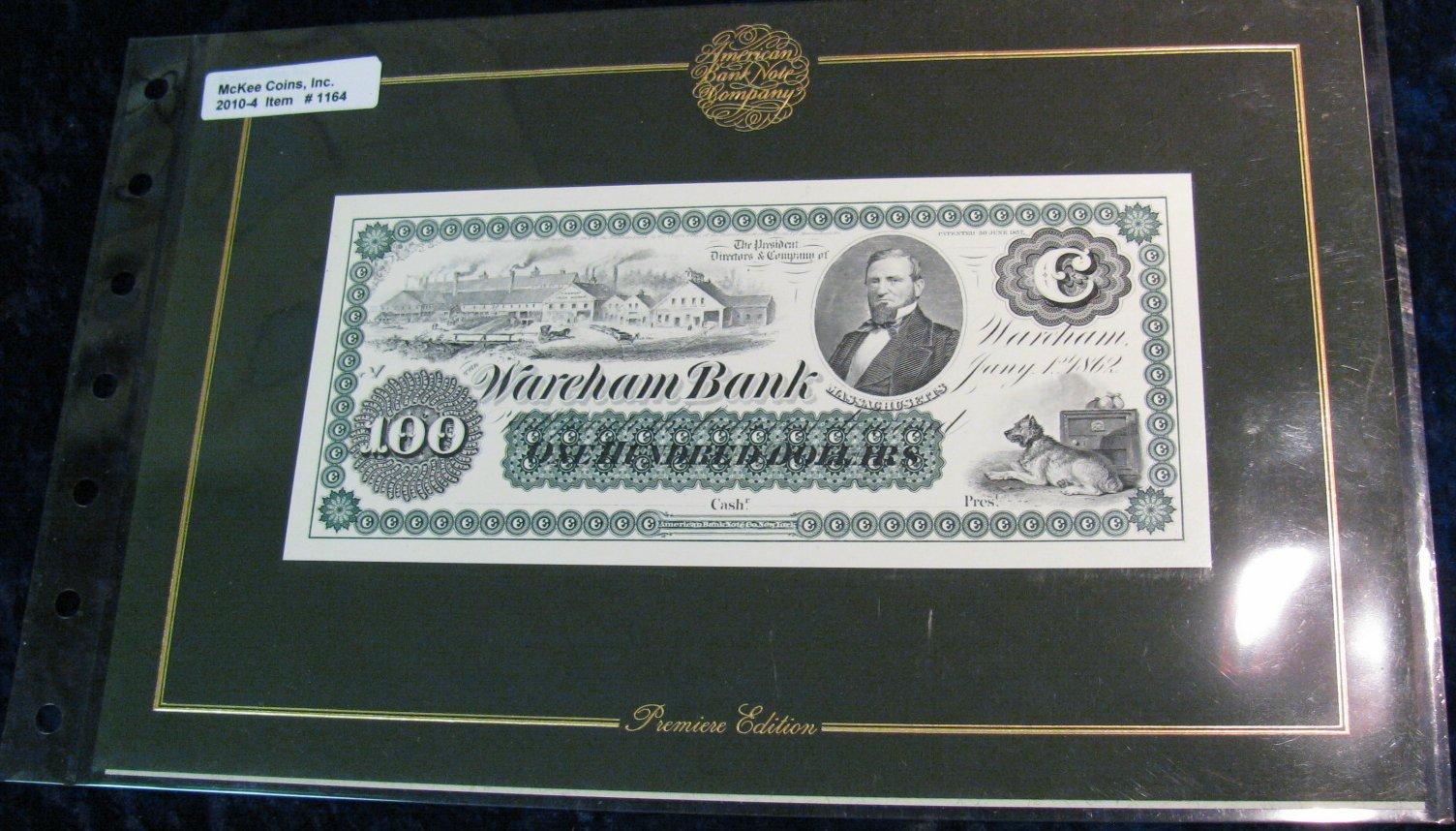 1164. Wareham Bank, Mass. Re-Printed fron the Original Plates.