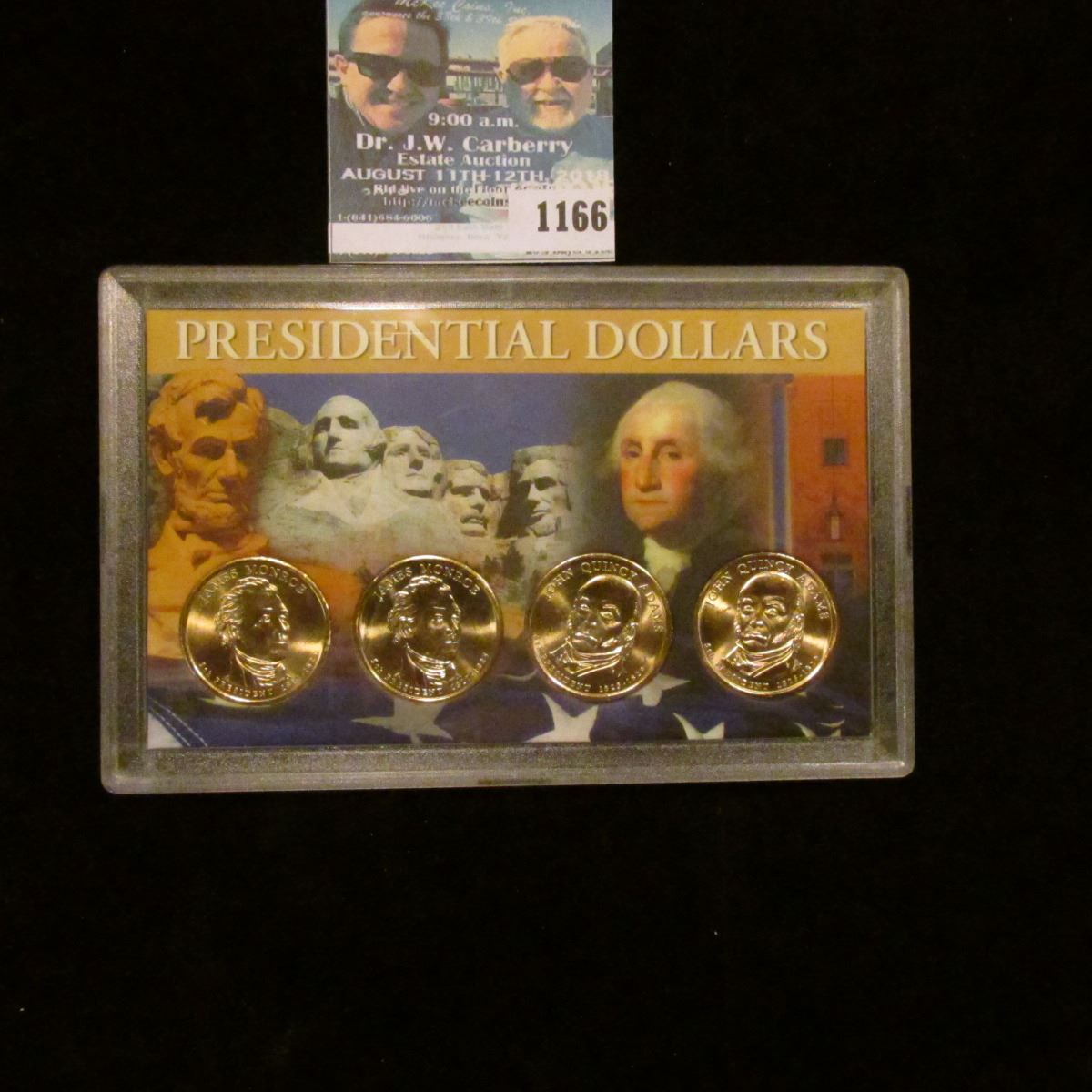 Pair of James Monroe & pair of John Quincy Adams Presidential Dollars in a special case of issue. (4-pieces Dollars).