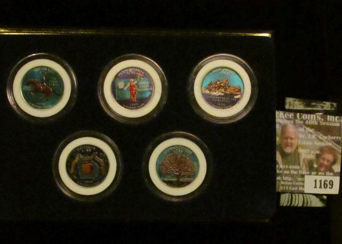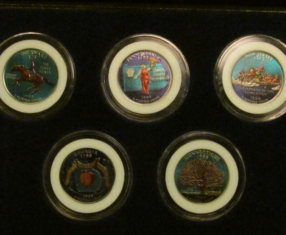 1999 Colorized Statehood Five-Piece Quarter Set in a fancy holder and special box. Each coin is handsomely encapsulated.