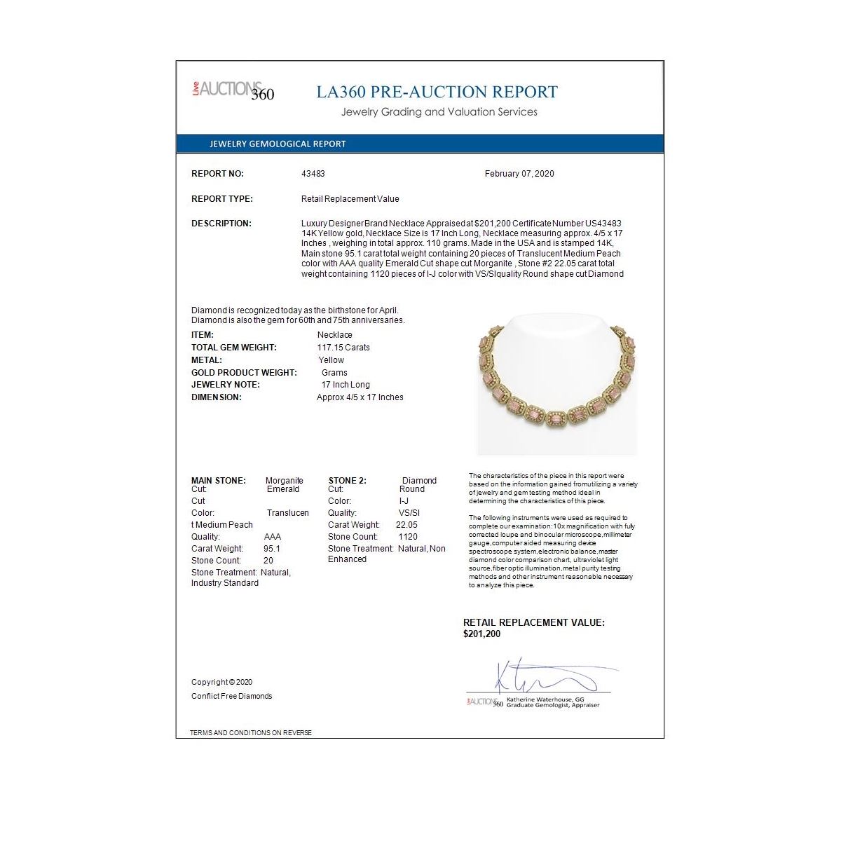 REF-4065A3N - SKU: 43483 ---- 117.15 ctw Morganite & Diamond Victorian Necklace 14K Yellow Gold