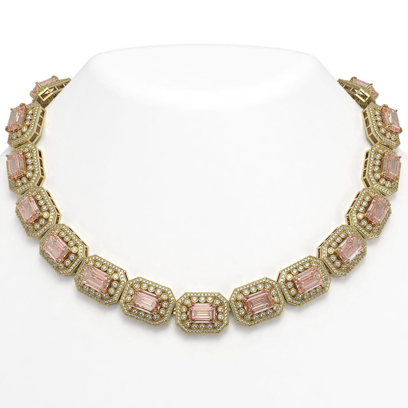 REF-4065A3N - SKU: 43483 ---- 117.15 ctw Morganite & Diamond Victorian Necklace 14K Yellow Gold