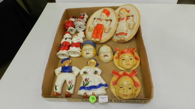 117) group of vintage chalk and porcelain Dutch boy and girl wall art