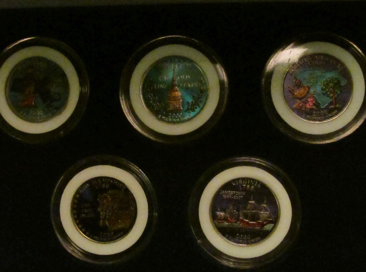 2000 Colorized Statehood Five-Piece Quarter Set in a fancy holder and special box. Each coin is handsomely encapsulated.