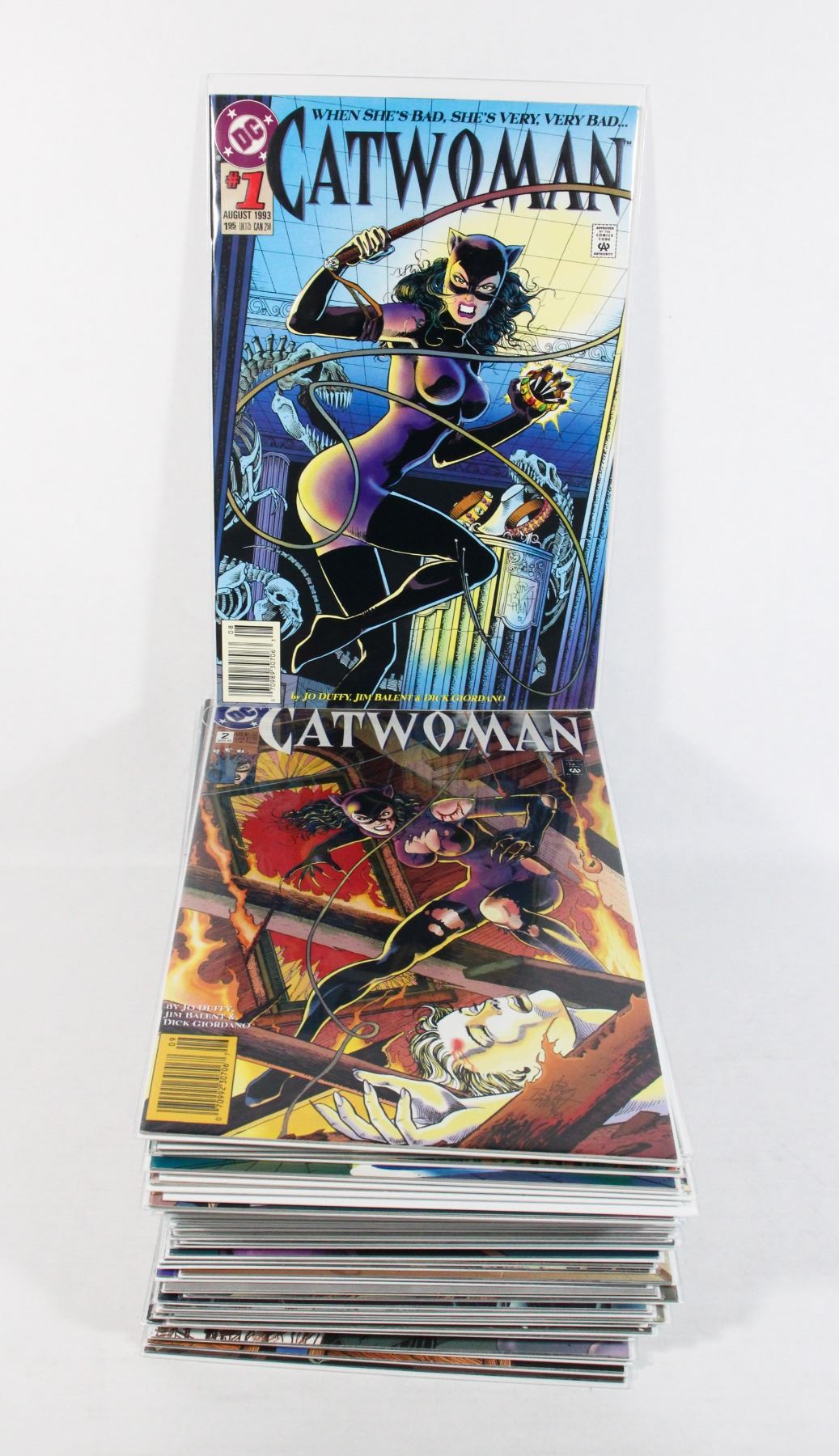 LOT OF 49 CATWOMAN SERIES COMIC BOOKS AUGUST 1993 #1-#7, #9-#18, #20-#28, #30, #33-#36, #38-#39, #41-#46, #48-#51, #53-#59 DC DETECTIVE COMICS COMIC BOOK LOT