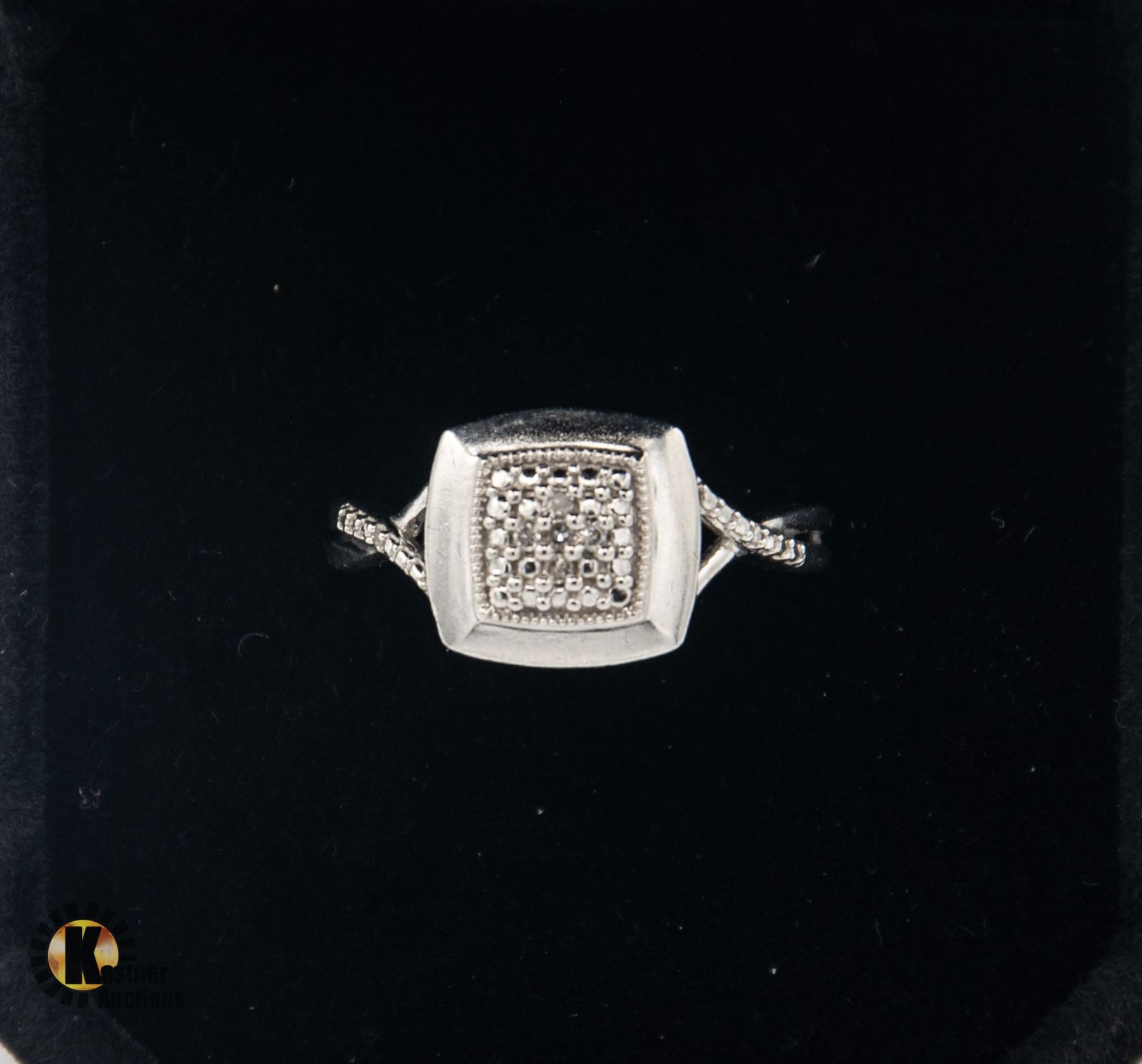 OF RING WITH 2 SINGLE CUT DIAMONDS SET IN SHANK OF RING, ONE PER SIDE SET IN 925 SILVER RING SIZE 7 **ALL ITEMS MUST BE REMOVED BY 5PM SATURDAY, DECEMBER 14th 2024. ALL REMAINING ITEMS WILL BE SUBJECT TO A $6.00 PER DAY STORAGE CHARGE. ANY ITEMS REMAINING AFTER MONDAY, DECEMBER 30TH 2024 WILL BE CONSIDERED FORFEITED. NO REFUNDS WILL BE ISSUED FOR FORFEITED ITEMS. TO SCHEDULE A PICK UP APPOINTMENT CLICK HERE