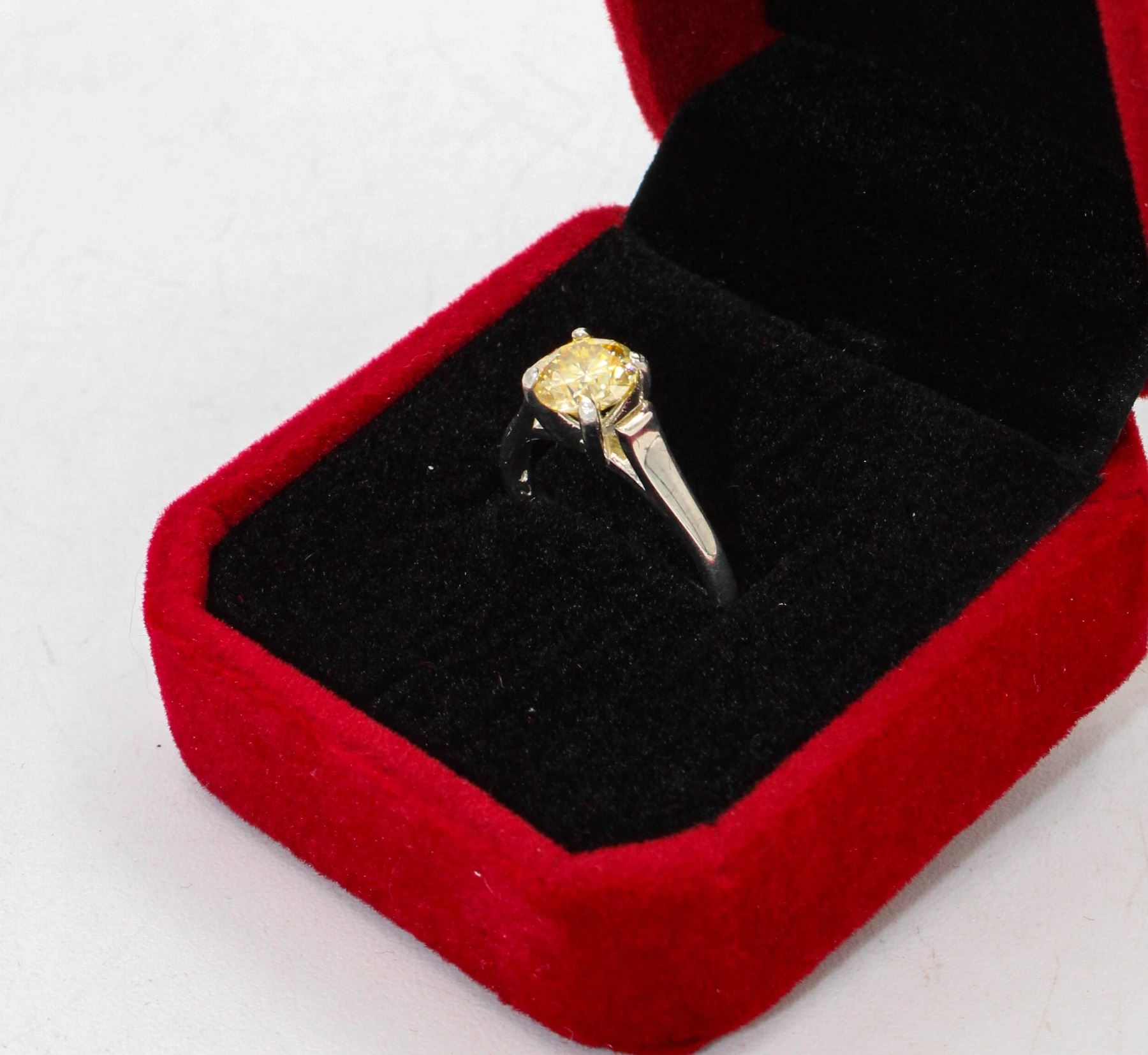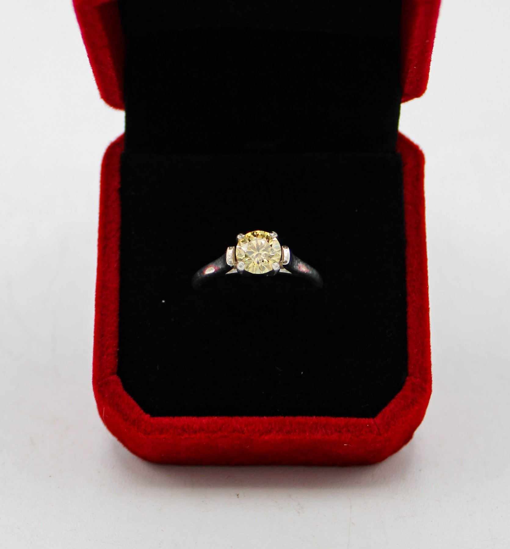 ROUND BRILLIANT CUT MOISSANITE STONE VVS LEMON YELLOW SET IN 925 SILVER RING SIZE 7