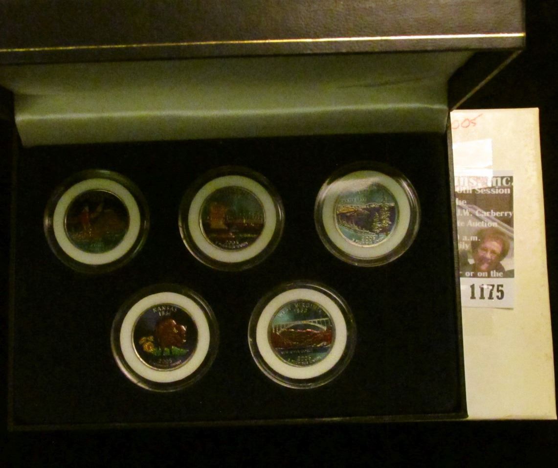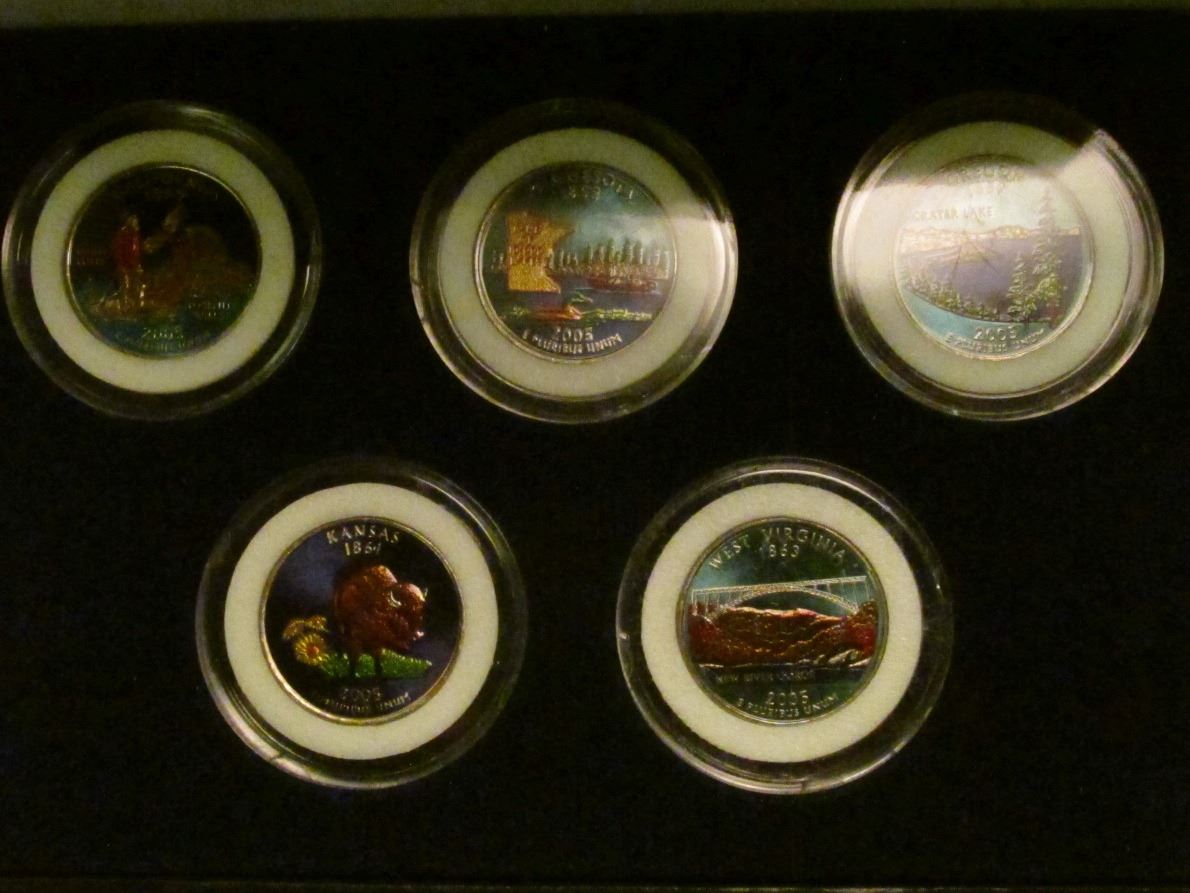 2005 Colorized Statehood Five-Piece Quarter Set in a fancy holder and special box. Each coin is handsomely encapsulated.