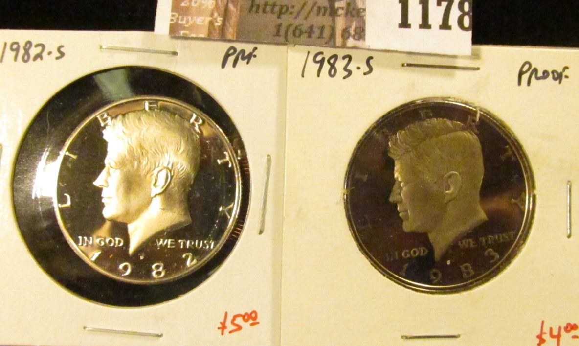 1178 . (2) Proof Kennedy Half Dollars, 1982-S & 1983-S, value for p