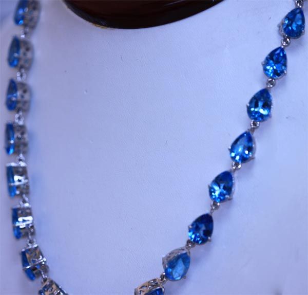 118.5 CTW BLUE TOPAZ PEARSHAPE NECKLACE .925 STERLING S **|**|** 118.5 CTW BLUE TOPAZ PEARSHAPE NECKLACE .925 STERLING SILVER; MAINSTONE 45.90 CTW ; MSRP: $7800