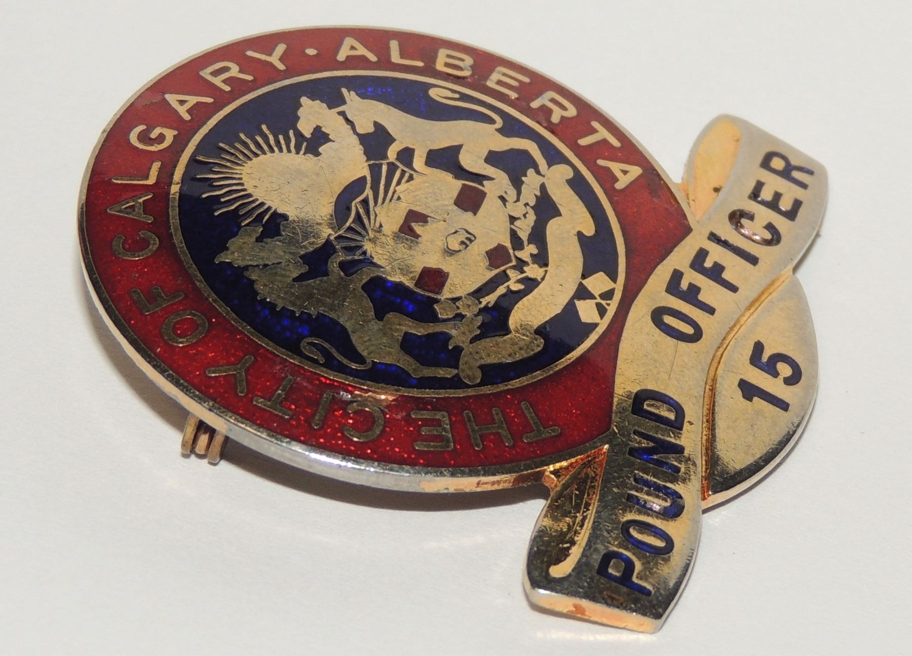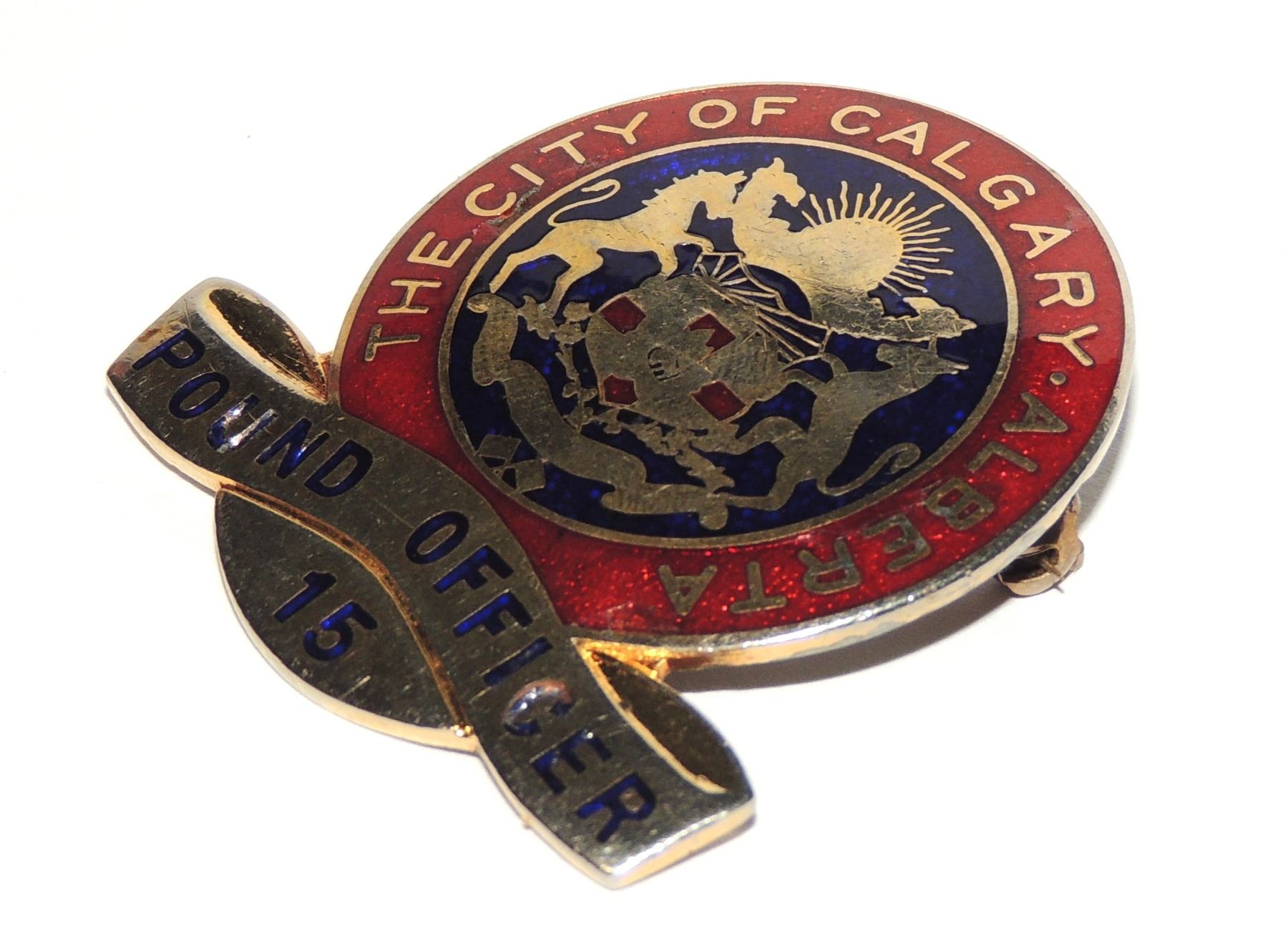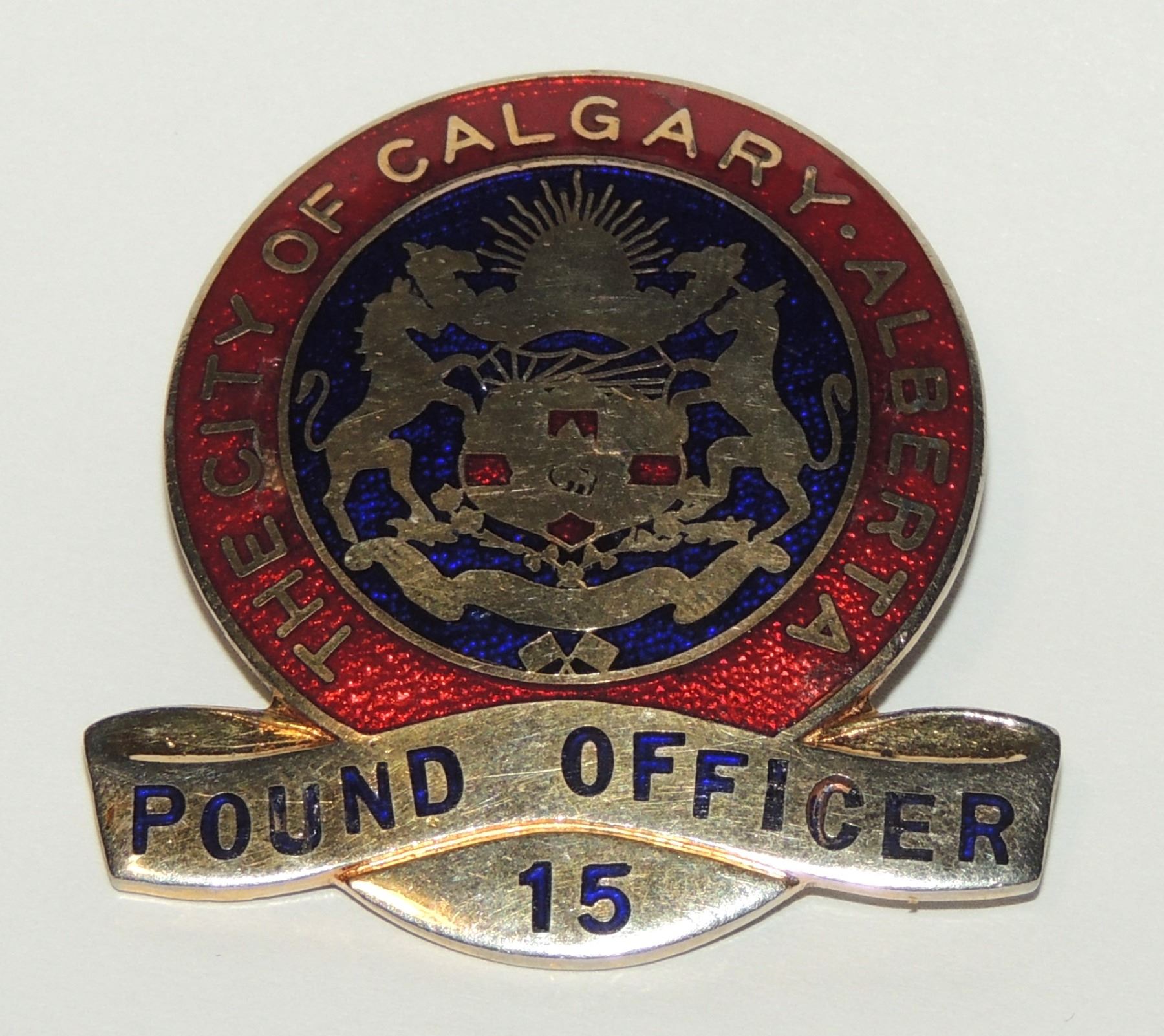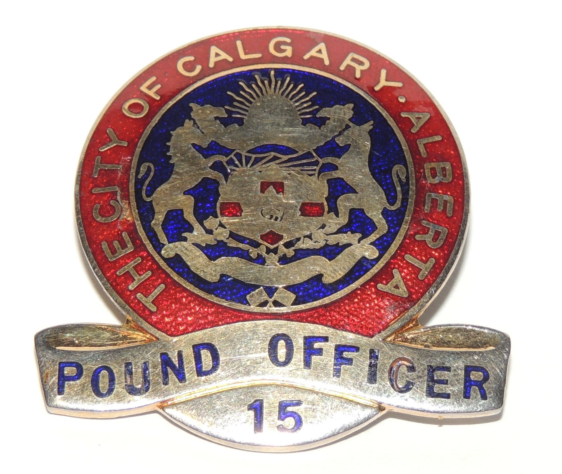 POUND OFFICER #14 ENAMEL BADGE W.SCULLY MONTREAL MAKER MARKED ON REVERSE VINTAGE CANADA CANADIAN POLICE LAW ENFORCEMENT CAP BADGE INSIGNIA