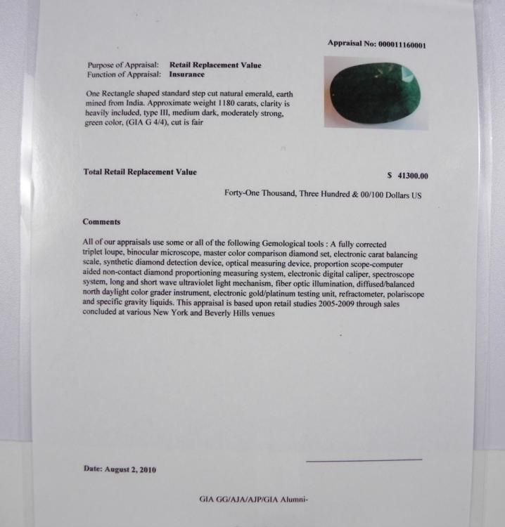 Gem Type: AmethystQTY: 1Total Ct. Weight: 1180Type IIICertification: Appraisal for insurance