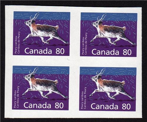 #1180d XF-NH IMPERF BLOCK 4 PEARY CARIBOU *SCARCE+RARE*