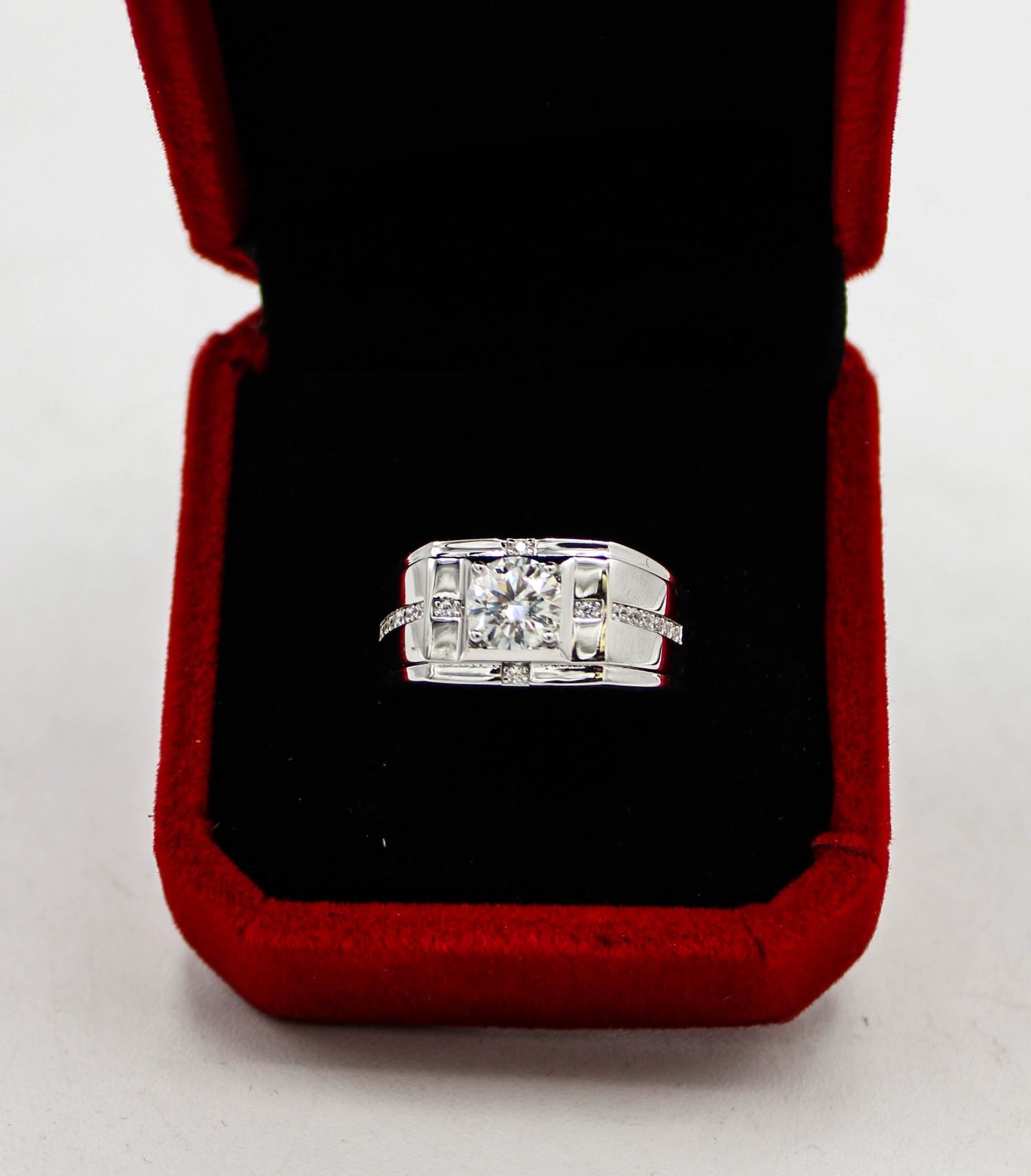 STONE D COLOR SET IN CENTER WITH 16 ROUND BRILLIANT CUT CUBIC ZIRCONIA SET IN SHANKS SET IN 925 RING SIZE 9.25